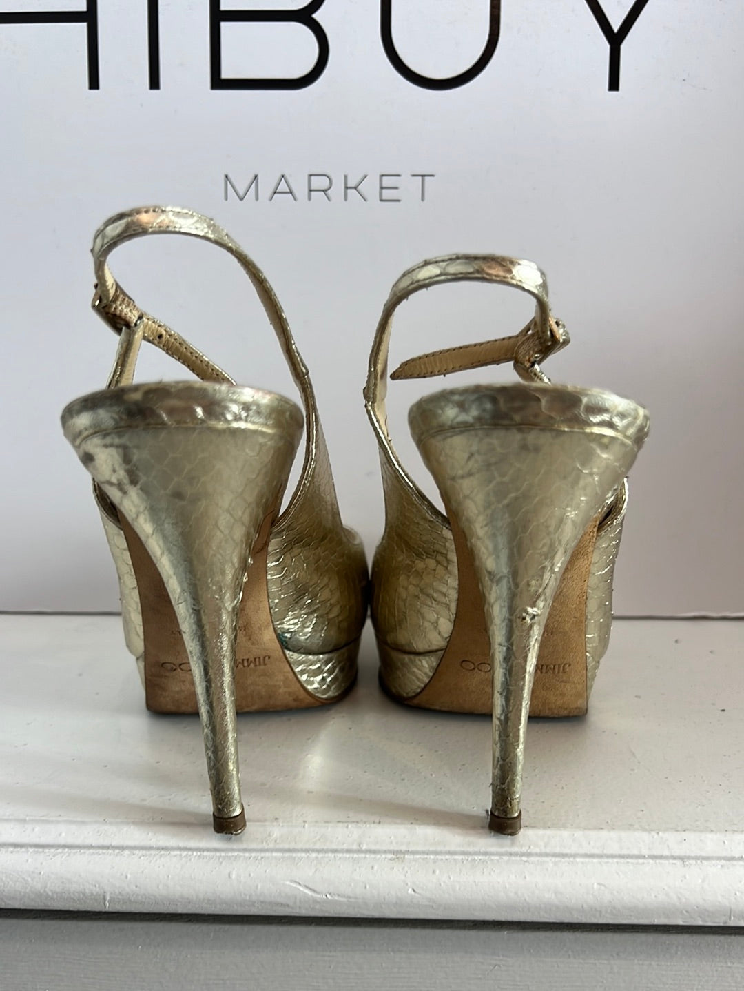 JIMMY CHOO. Sandalia peeptoes doradas textura. T 37.5