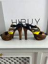 Sandalias plataforma tricolor texturas. Tienen manchas de roce en la zona amarilla