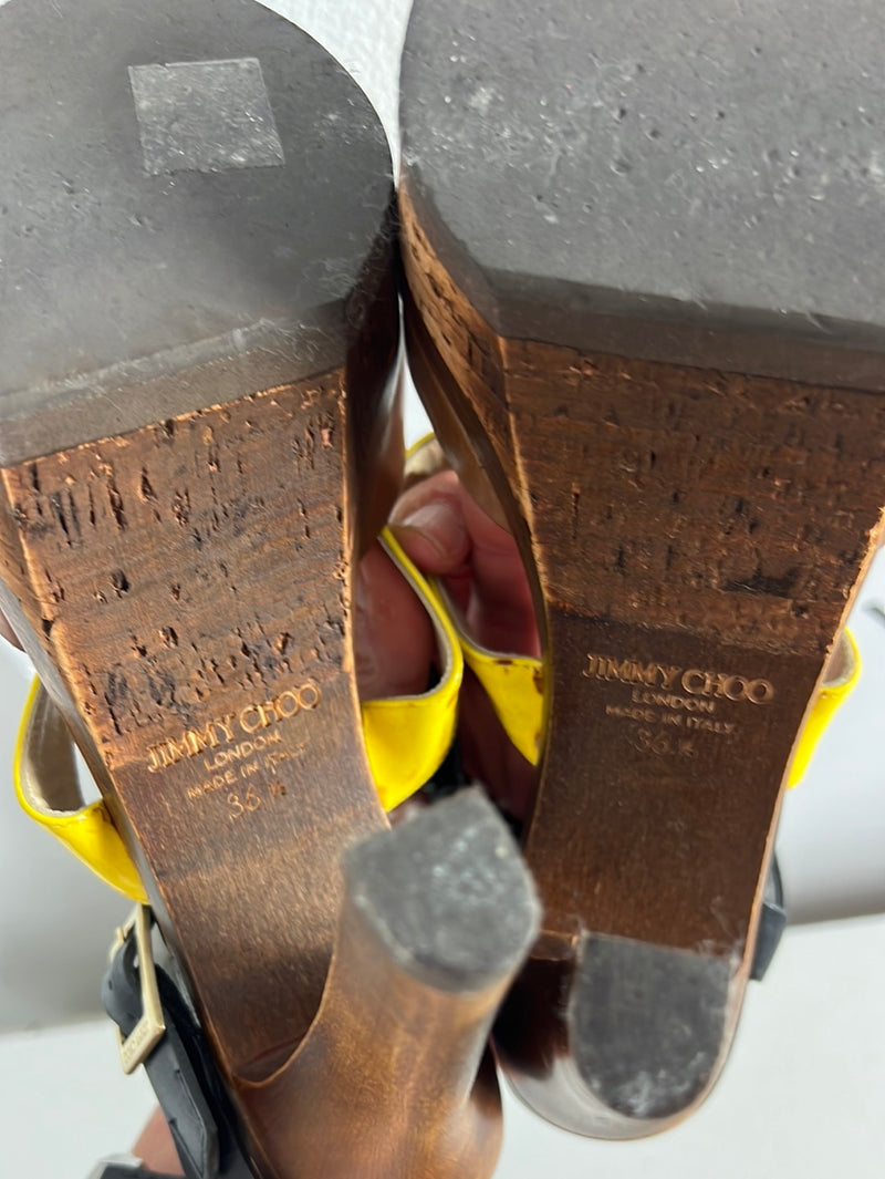 JIMMY CHOO. Sandalias plataforma tricolor texturas. T 36,5