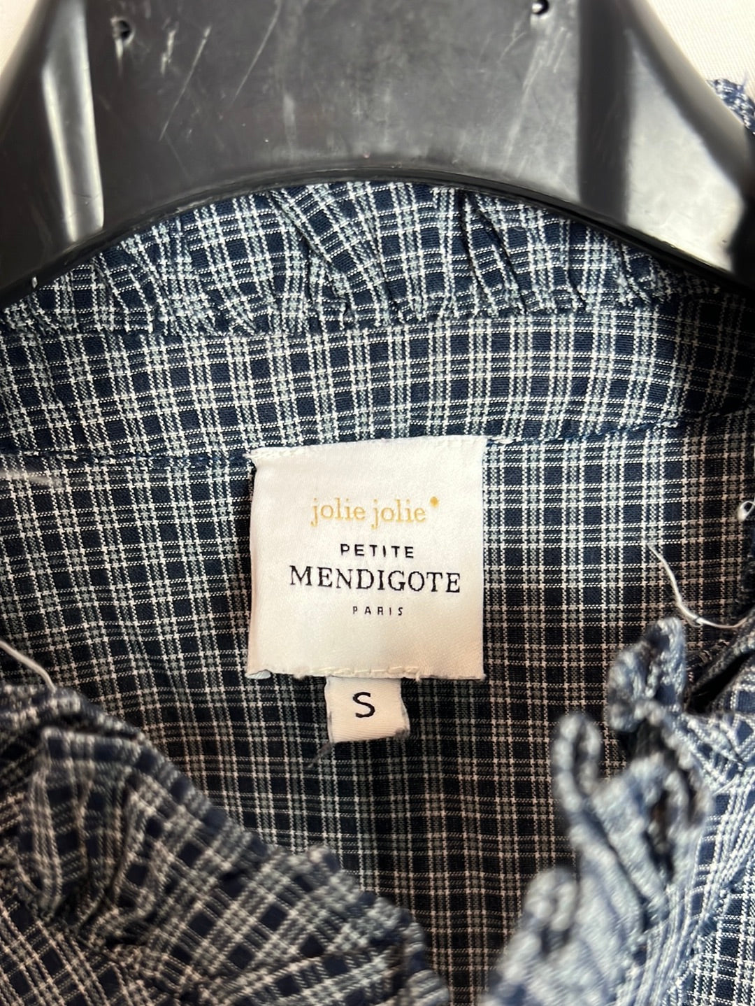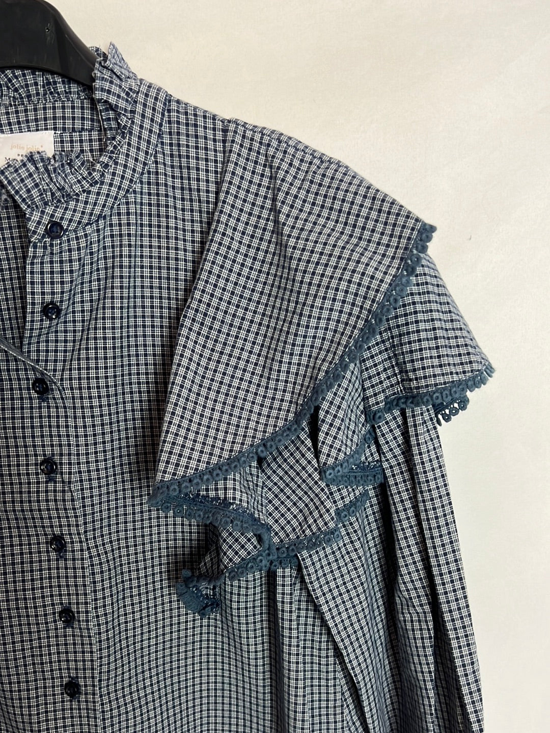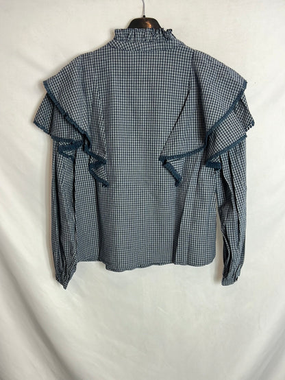 JOLIE JOLIE. Blusa azul cuadros volantes. T S