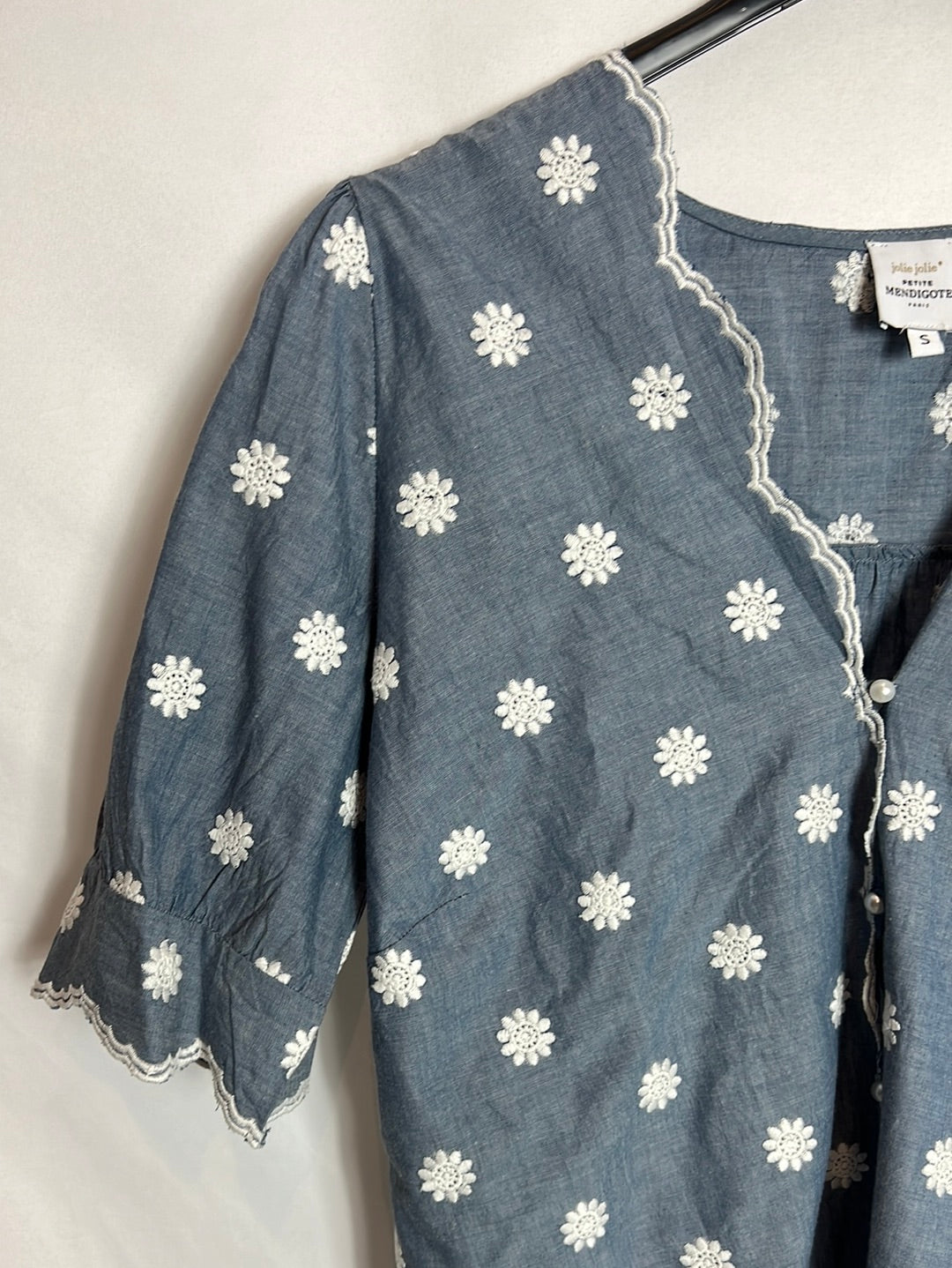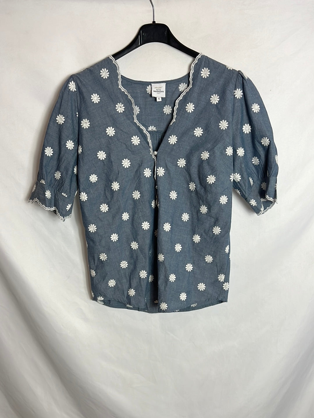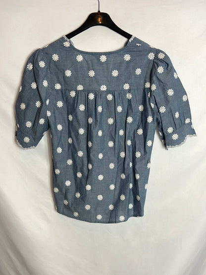 JOLIE JOLIE. Blusa efecto denim flores bordadas. T S