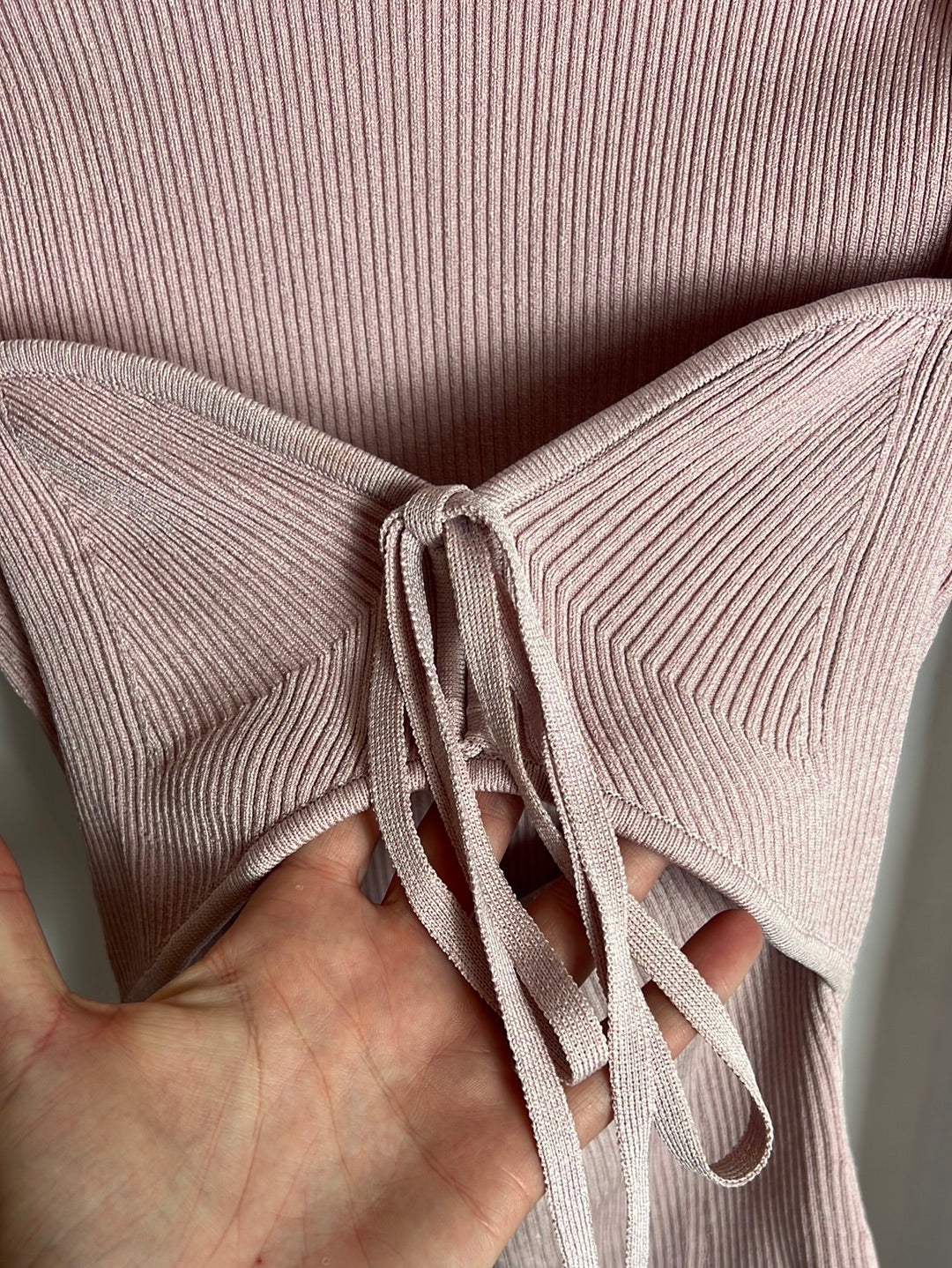 JONATHAN SIMKHAI. Jersey canalé rosa aperturas. T XS
