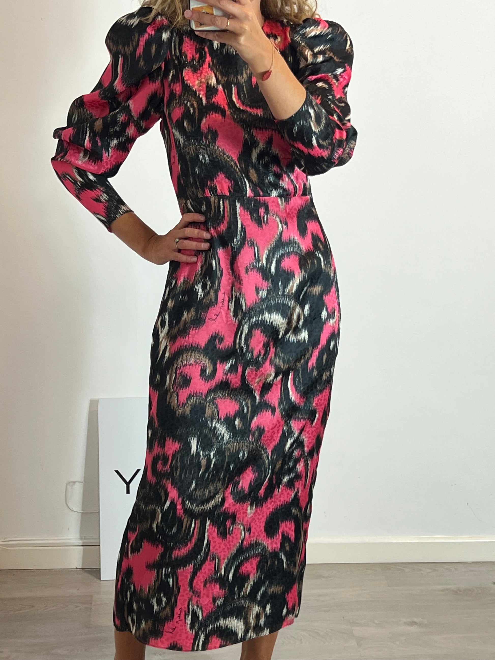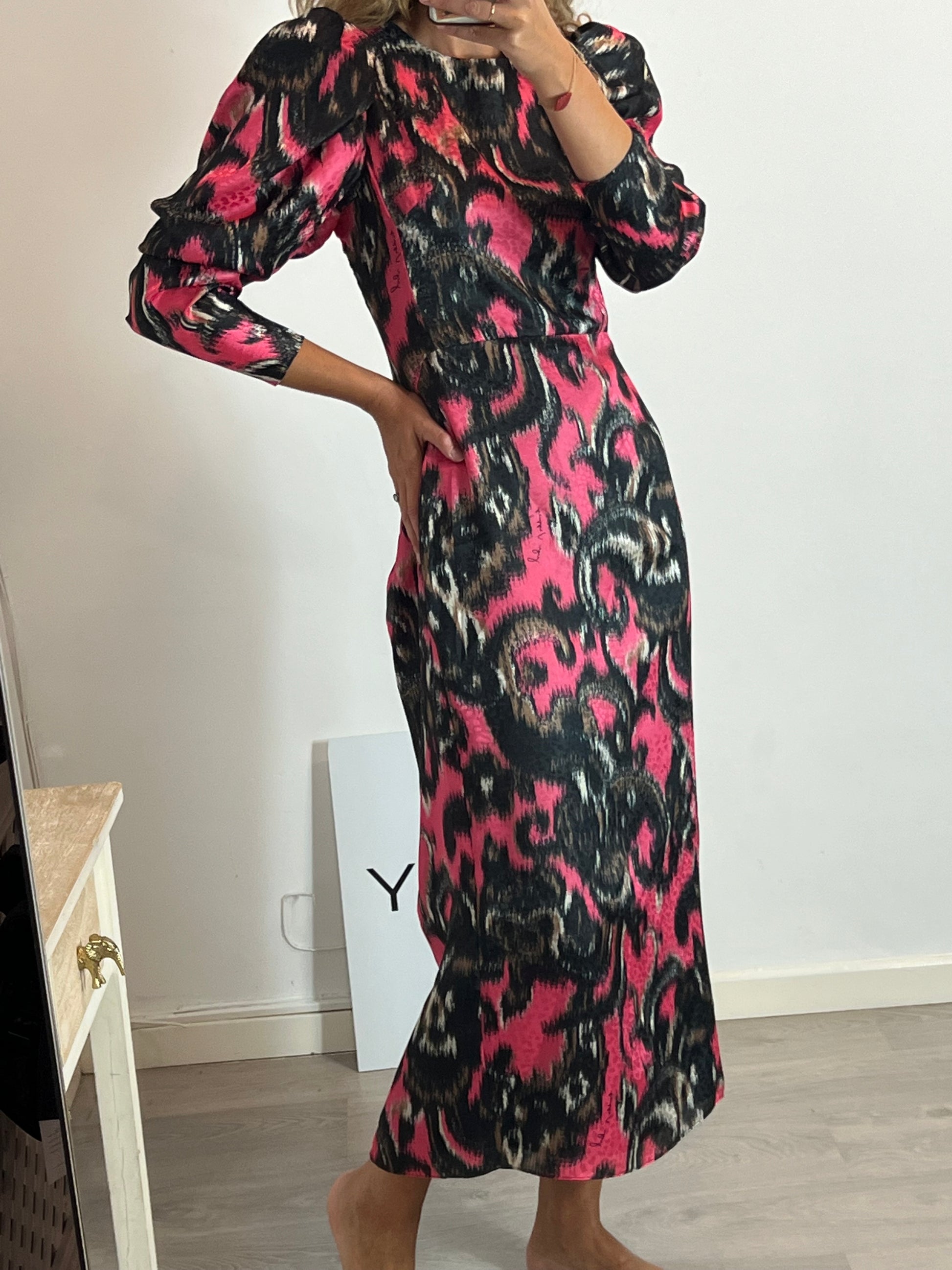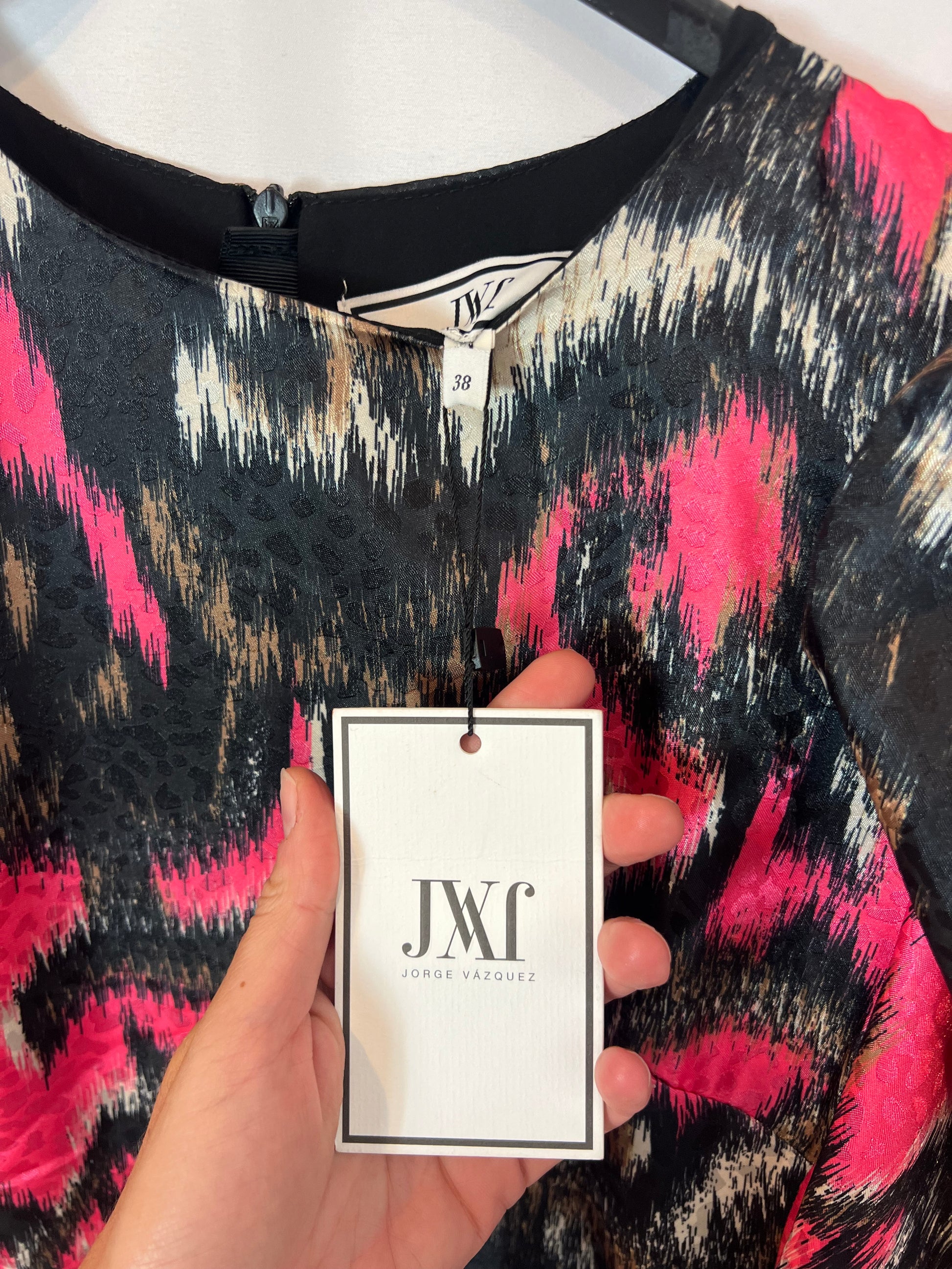JORGE VÁZQUEZ. Vestido largo estampado satinado. T 38
