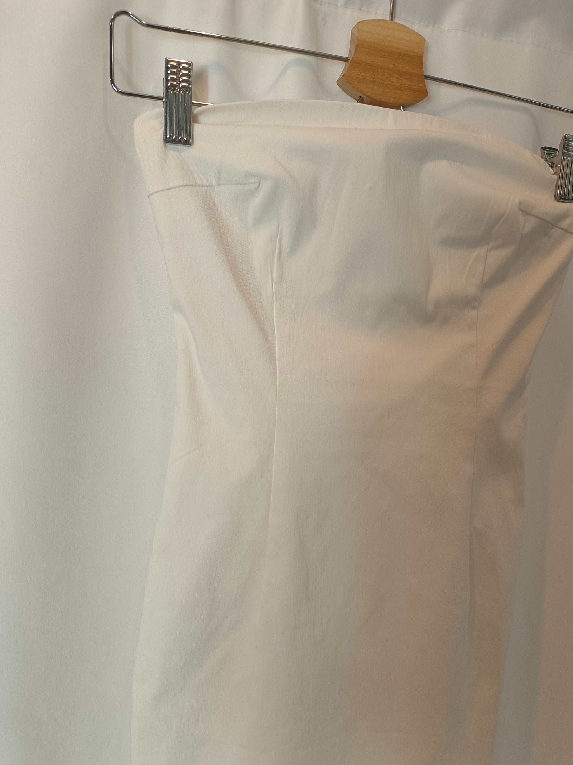 vestido midi blanco entallado palabra de honor de tejido elástico