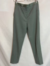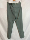 Pantalón verde agua pinzas. Tejido no elástico. Tara: mancha cerca del bolsillo izquierdo. Largo 97 cm, cintura 37 cm