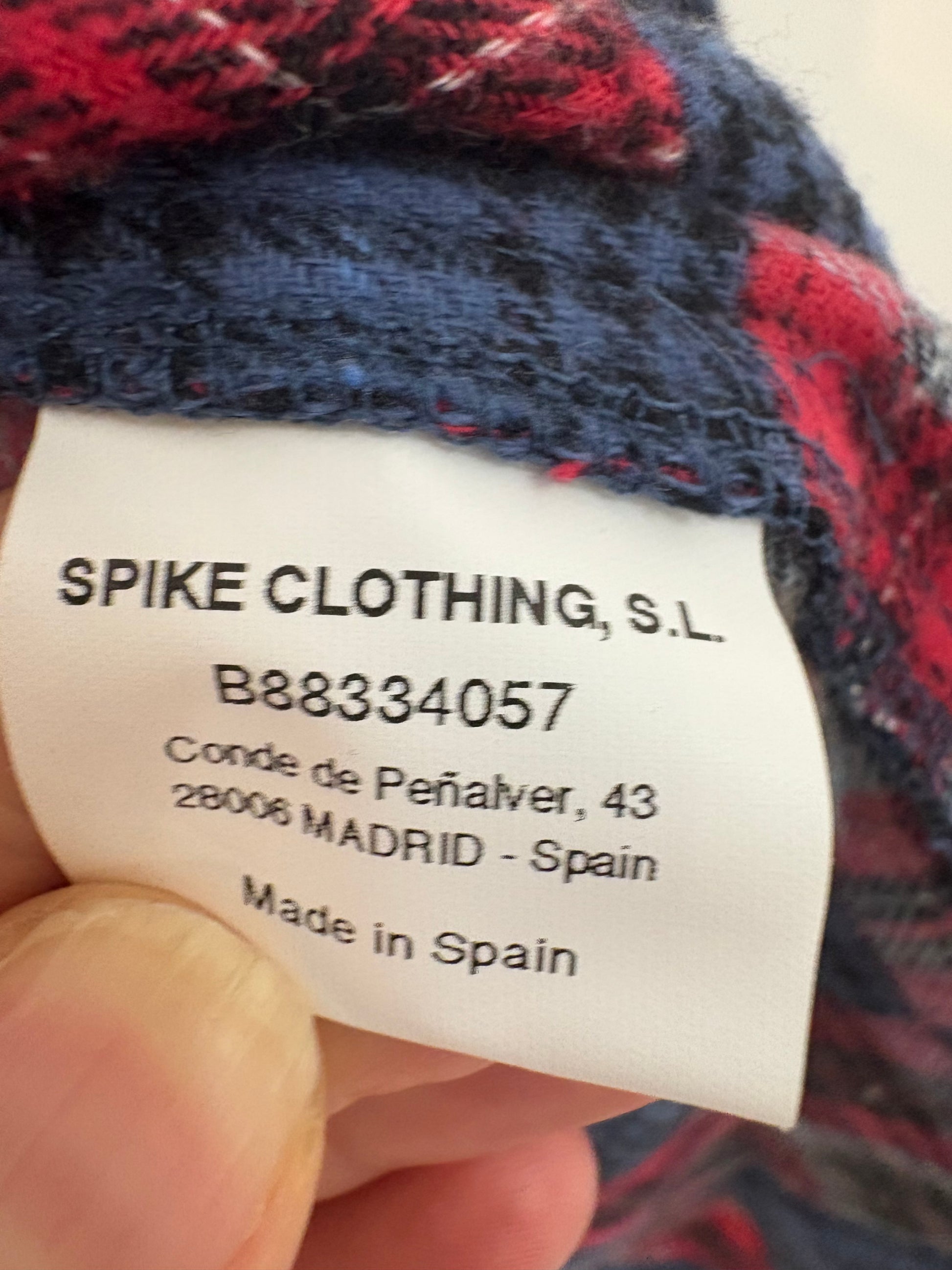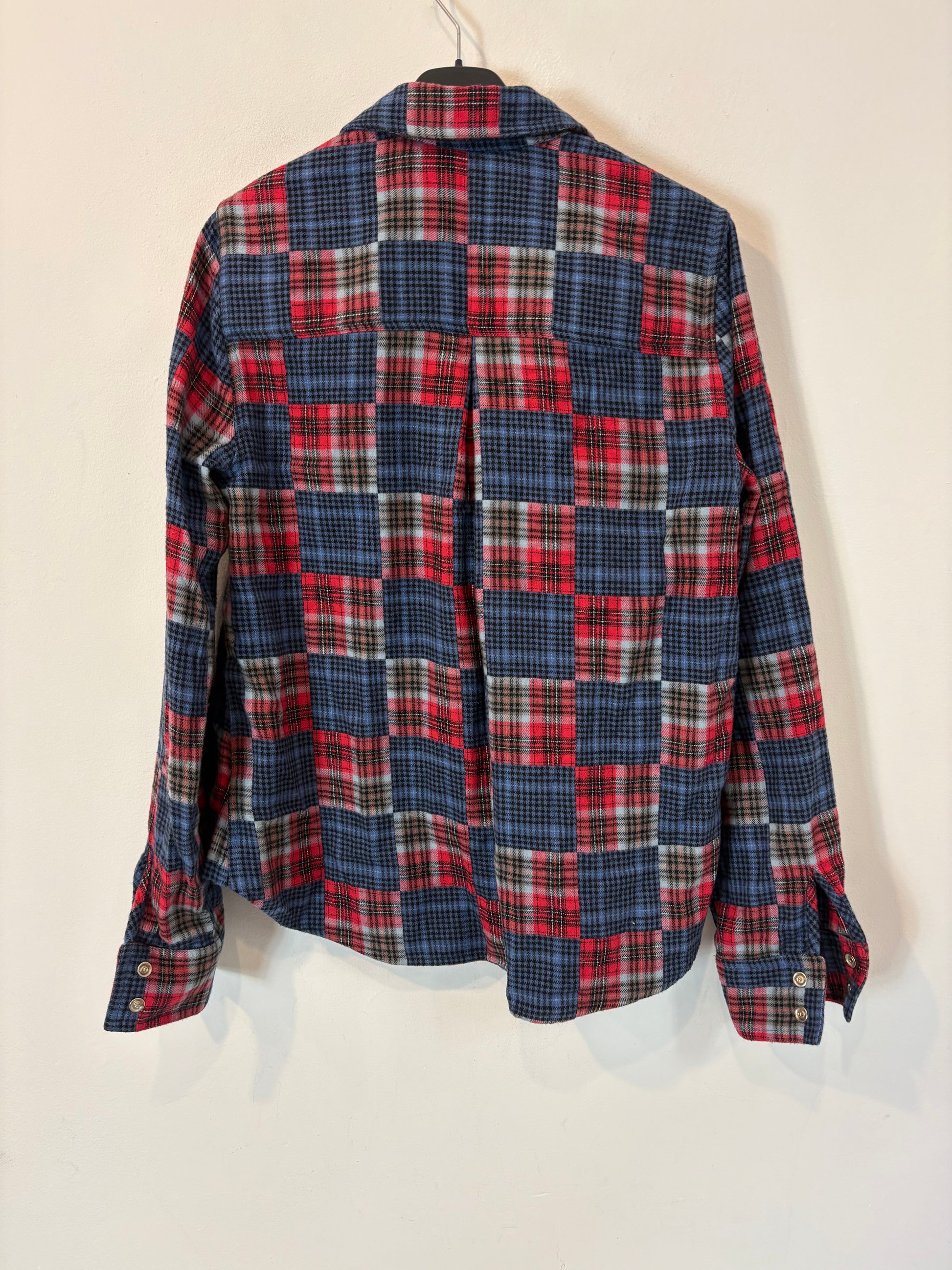 Sobre camisa azul y roja con botones clip. Espalda 50 cm , largo 65 cm. No elástica