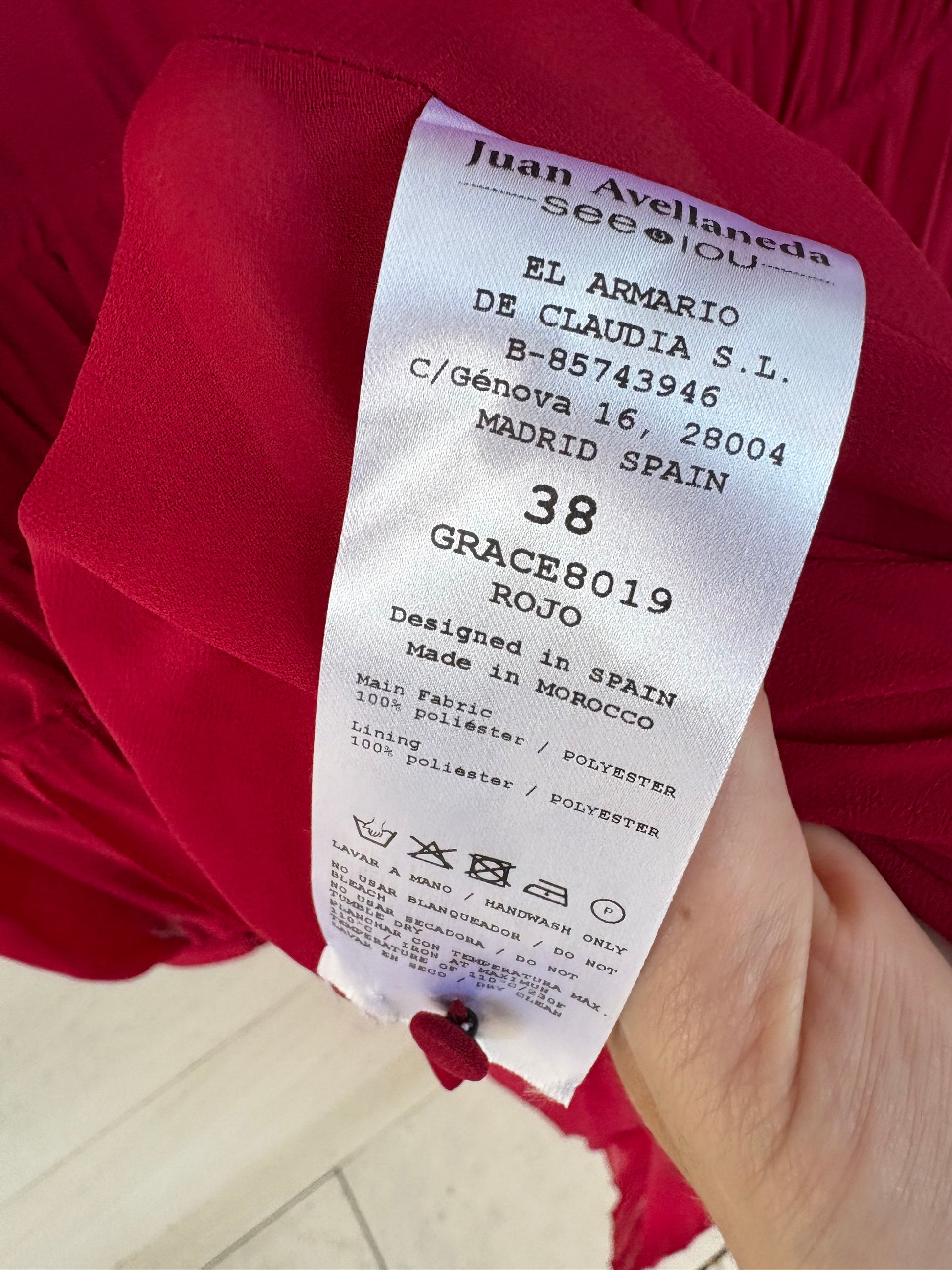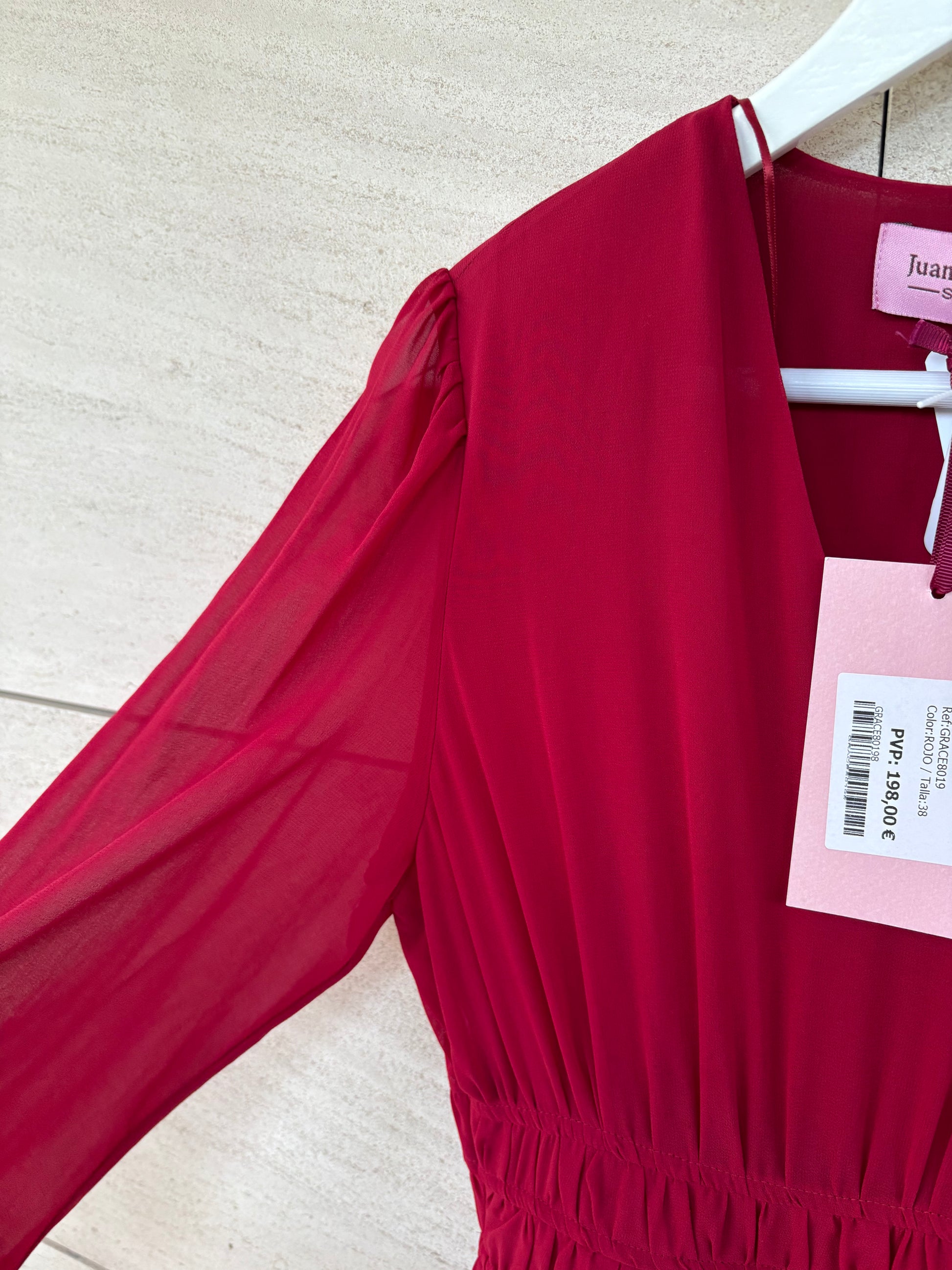 NUEVO CON ETIQUETA/Color rojo oscuro/ Espalda 48 cm , cintura 36 cm, largo 143 cm