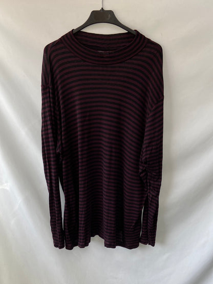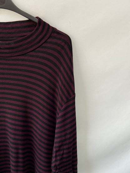 Junarose. Camiseta de rayas burdeos y negra de cuello perkins. Elástica y finita. Largo 79 cm