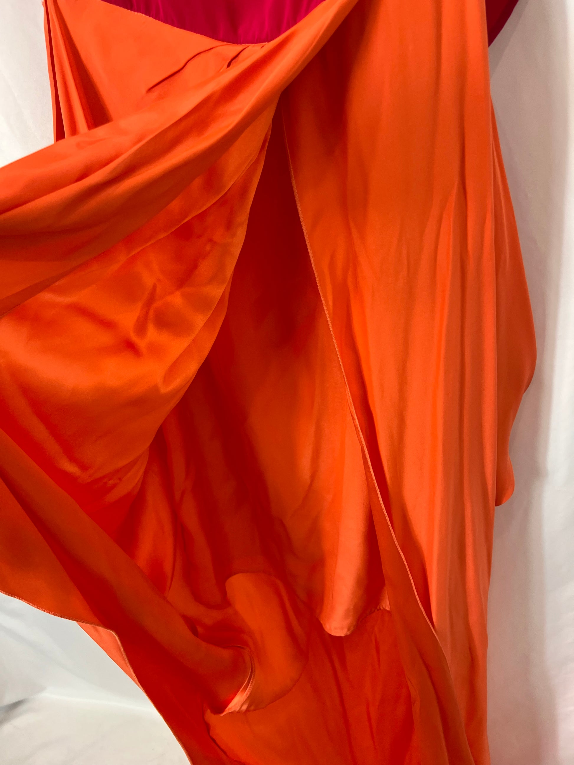 Vestido corto bicolor detalle cola. De sisa a sisa39cm, largo delantero 94cm, cintura 34cm. Largo cola desde la falda naranja 155cm