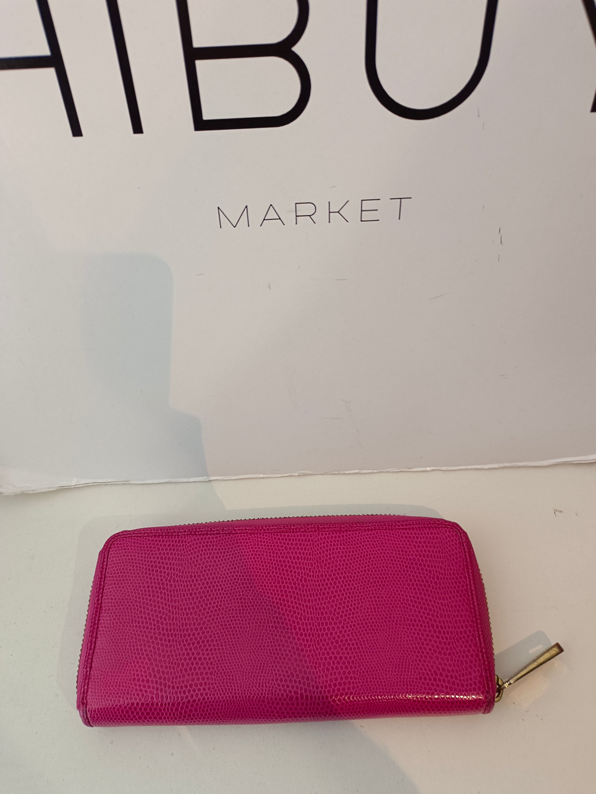 cartera rosa de piel