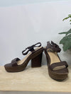 Sandalias marrones de tacón en plataforma de esparto. tacón 12,5 cm