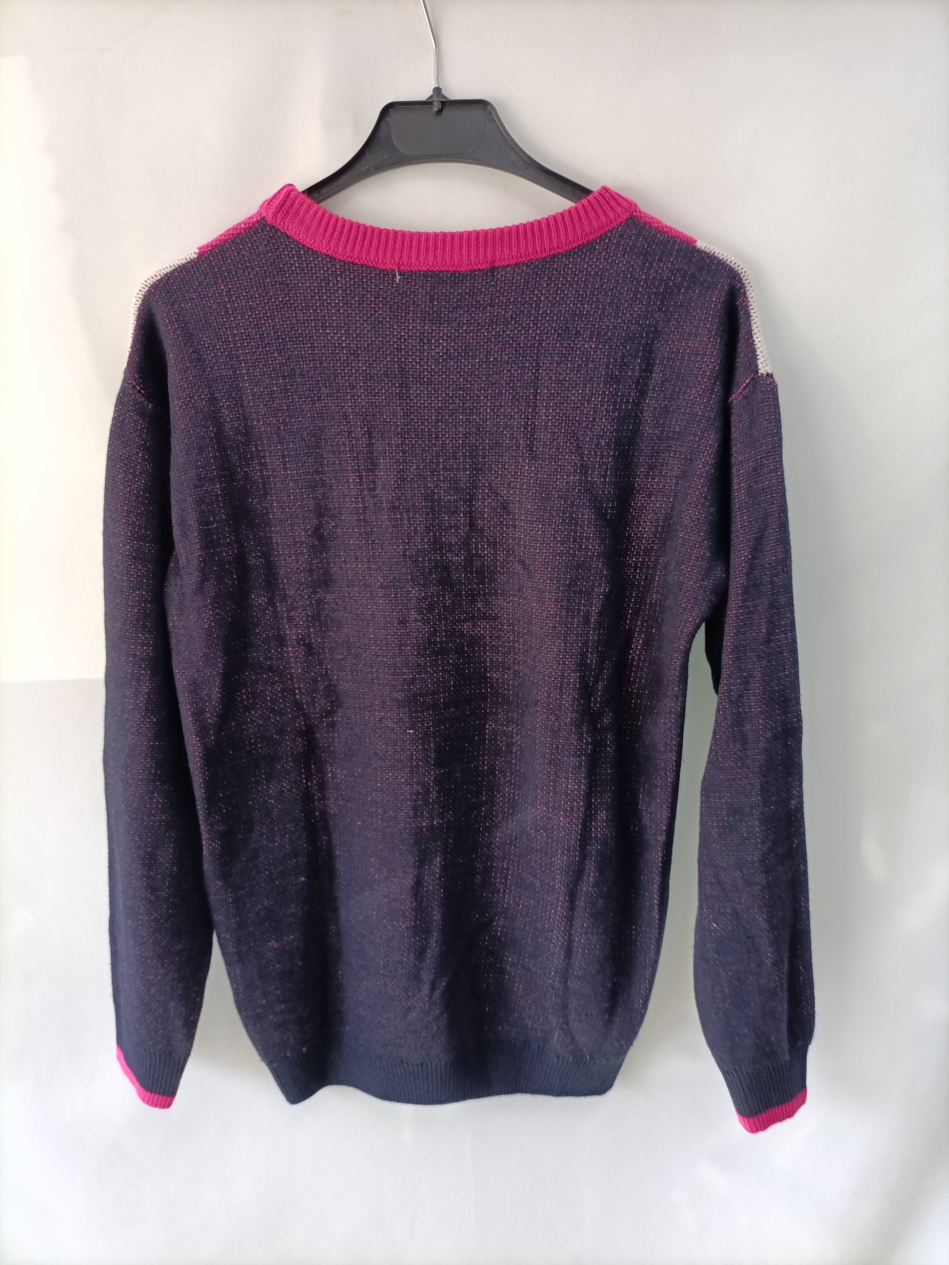 JUSTFAB. Jersey punto tricolor azul blanco rosa en pico elástico largo 65 ancho 43