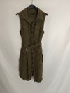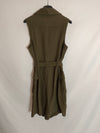 vestido corto verde estilo sahariano abotonado con bolsillos y cinturón.