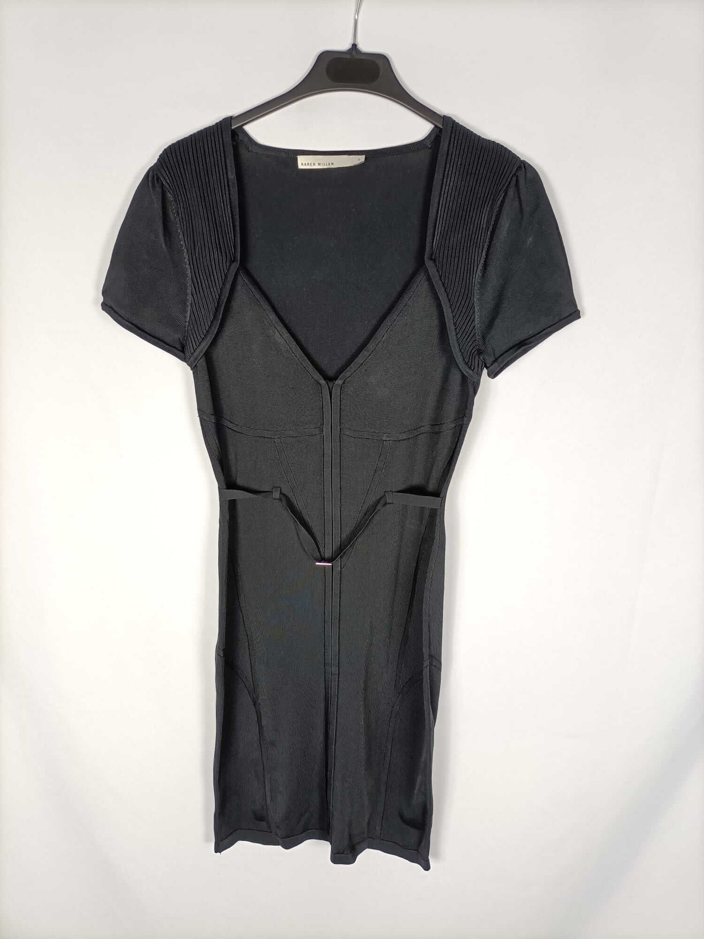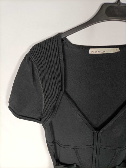 KAREN MILLEN.Vestido negro punto canalé T.3 (s/m)