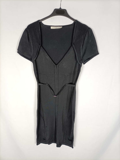 Karen Millen. Vestido de punto negro con varias texturas y detalle de cinturón. Elástica y ajustado. Largo 93 cm