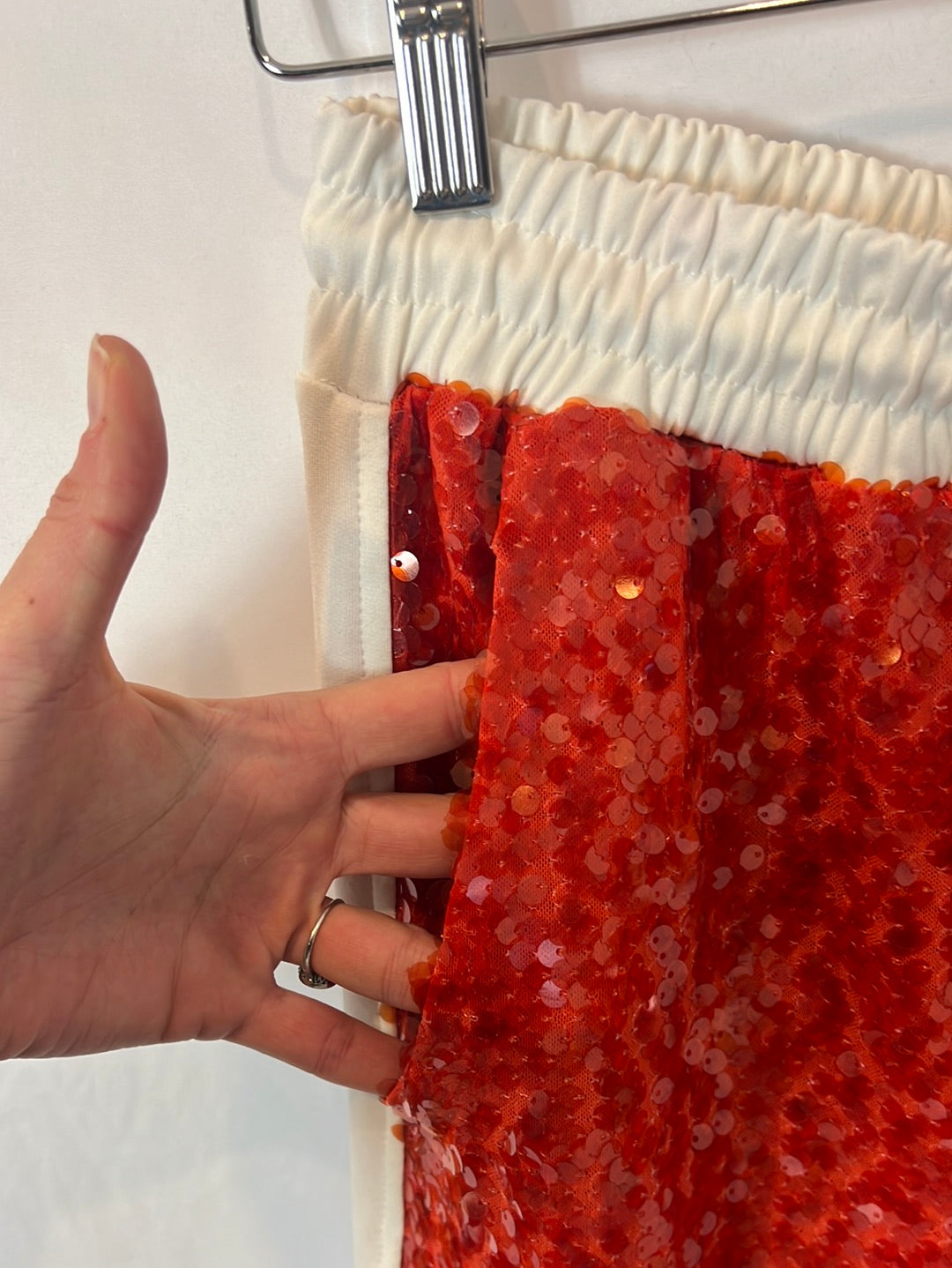 NUEVOS SIN USO. Pantalones bicolor lentejuelas fluidos. no elásticos. Cintura elástica 36cm, largo 107cm