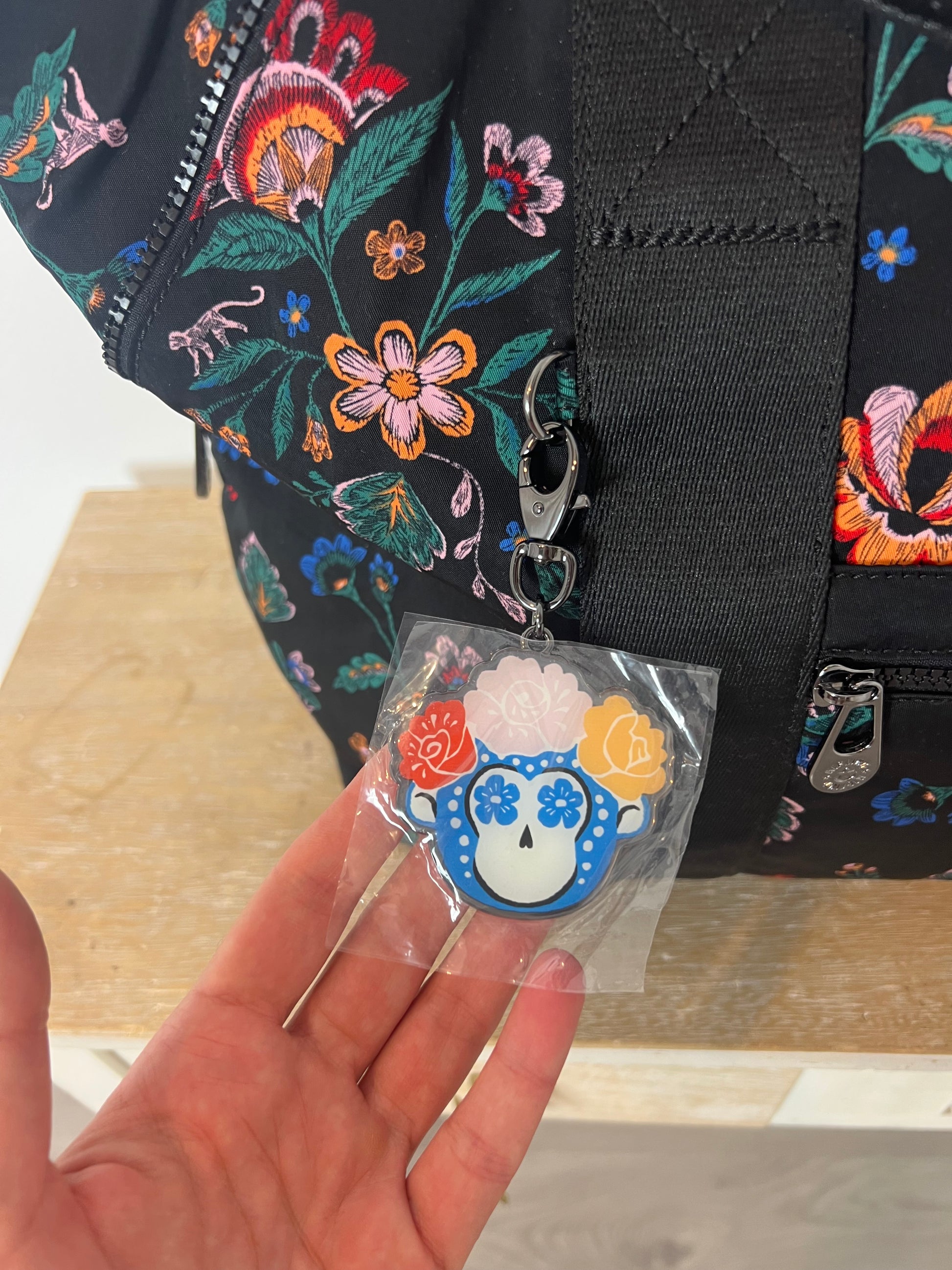 SIN ESTRENAR. Bolso tote negro con estampado de flores
