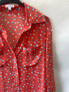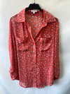 Camisa anaranjada con estampado semitransparente. Es una xs pero da más talla, estilo oversized.