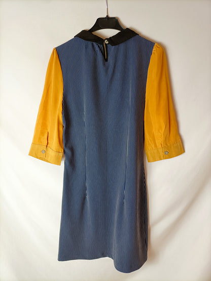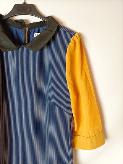 KLING. Vestido azul rayas mangas. T M
