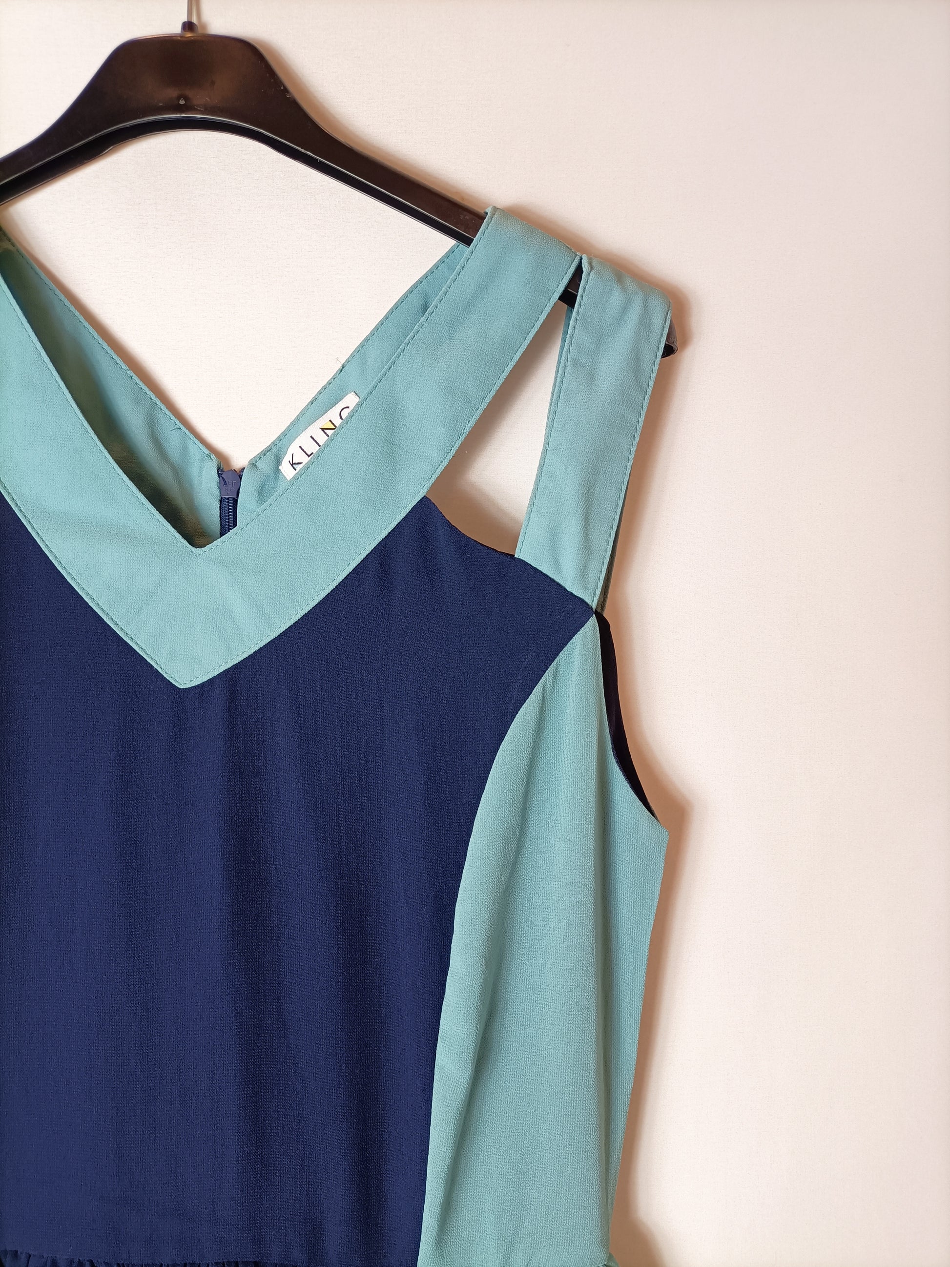 KLING. Vestido corto bicolor aperturas. T 2 (M)