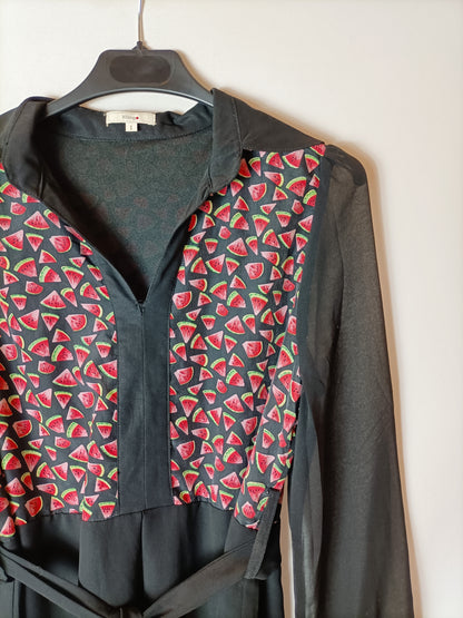 KLING. Vestido negro dibujos. T 1 (S)