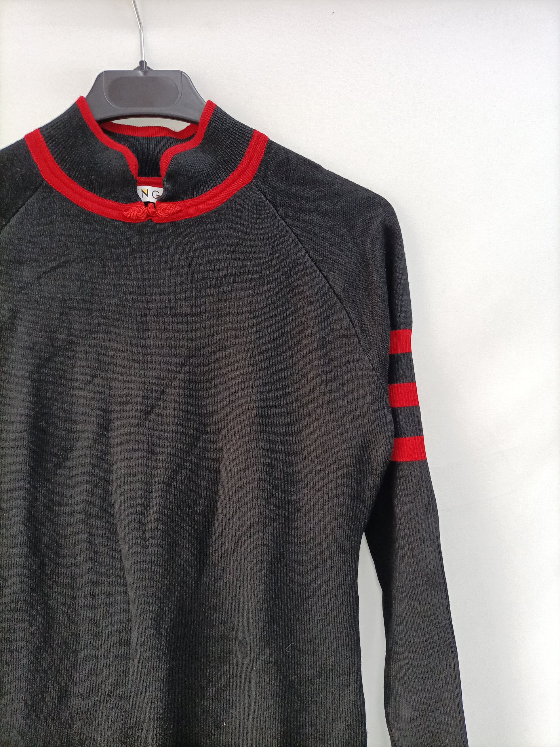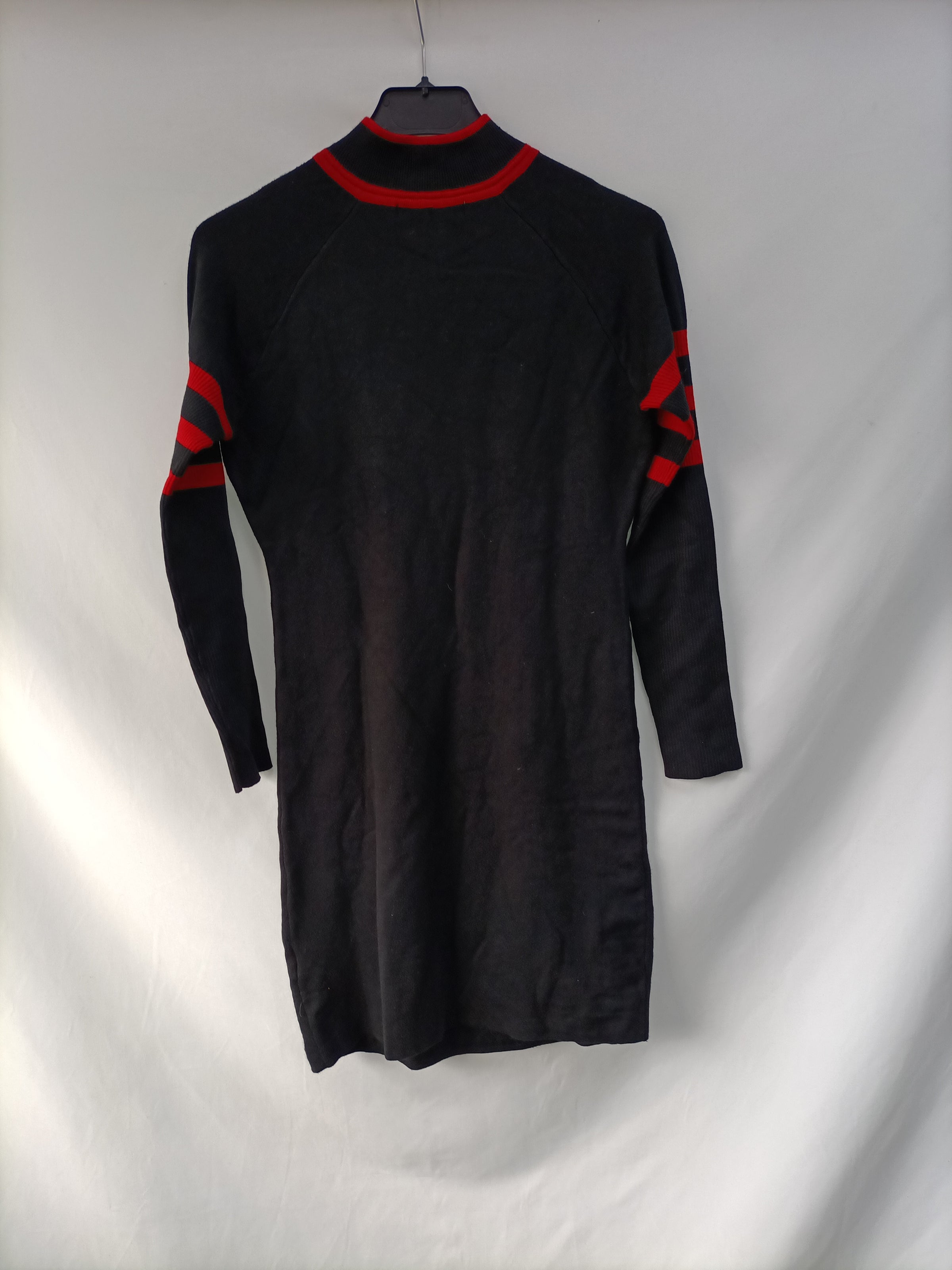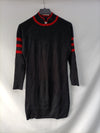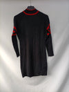 Vestido súper elástico gorditto negro detalles rojos. Largo 85 cm
