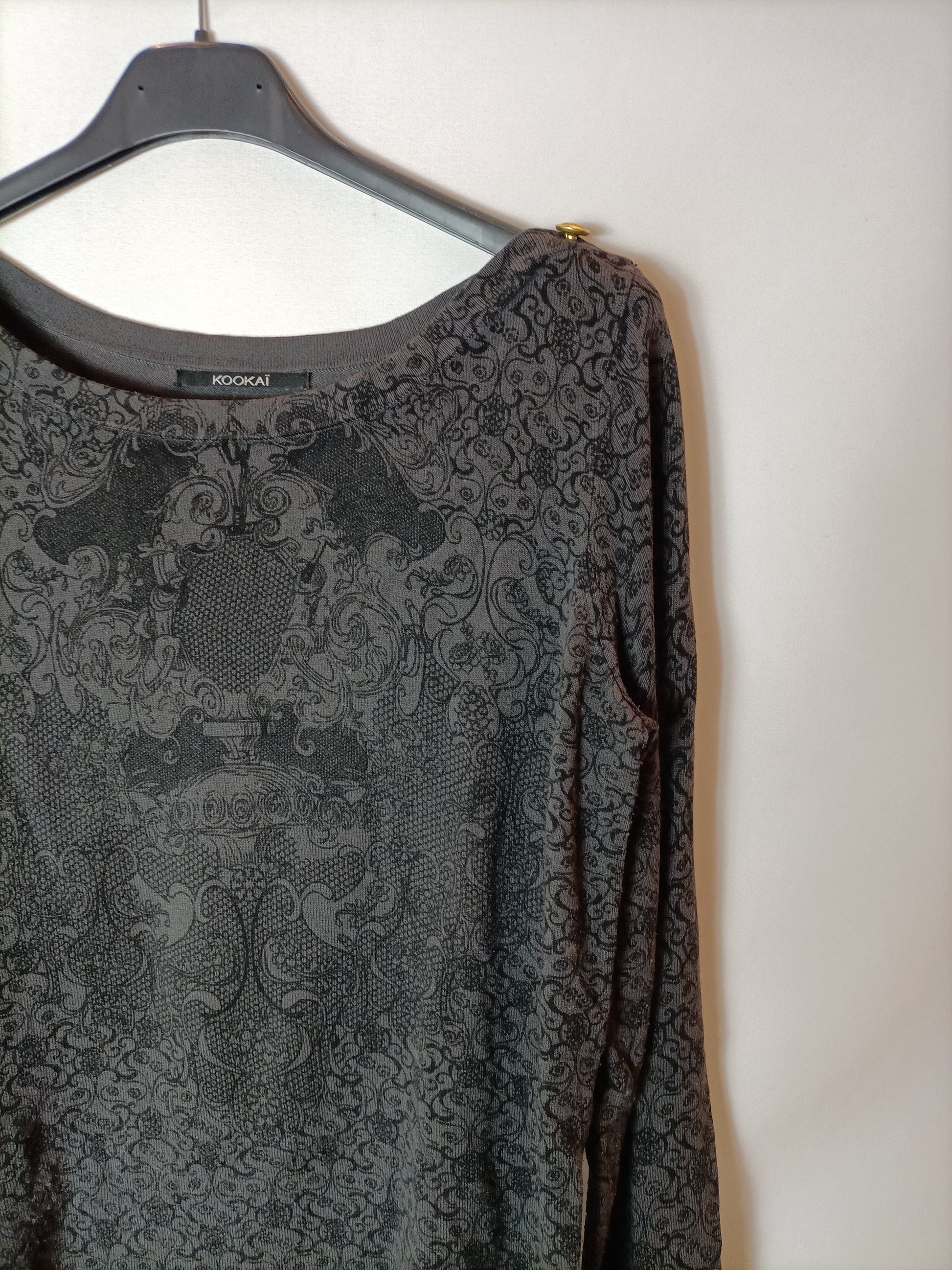 jersey gris con estampado en negro. Detalle de botones dorados. elástico.