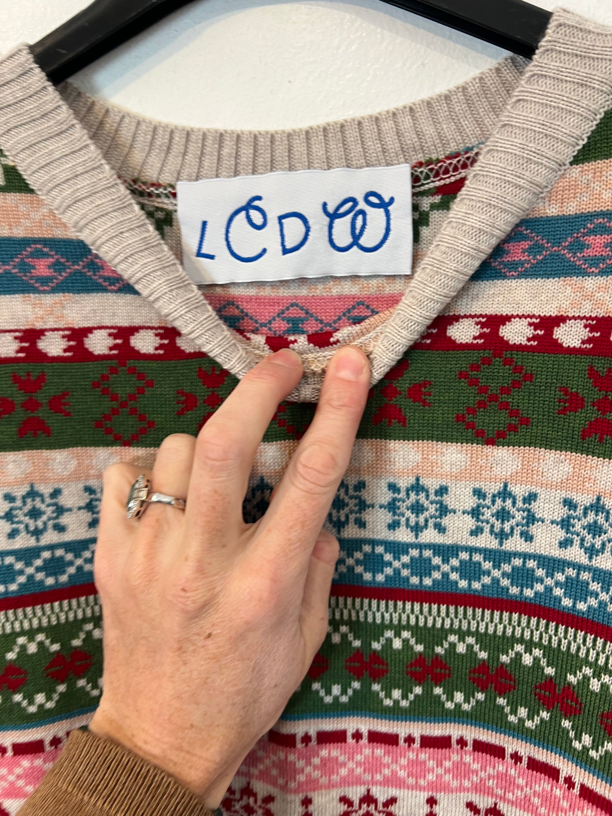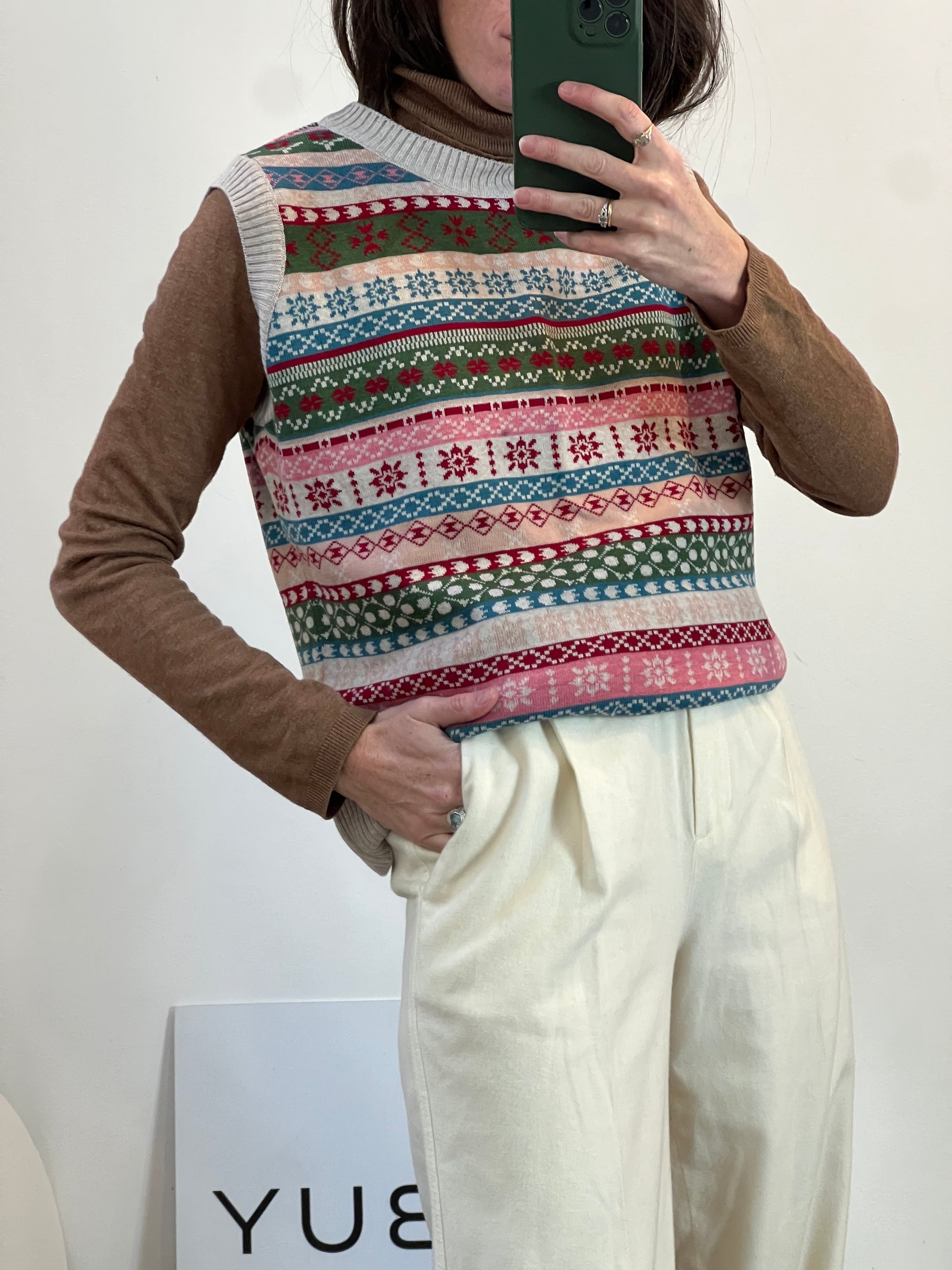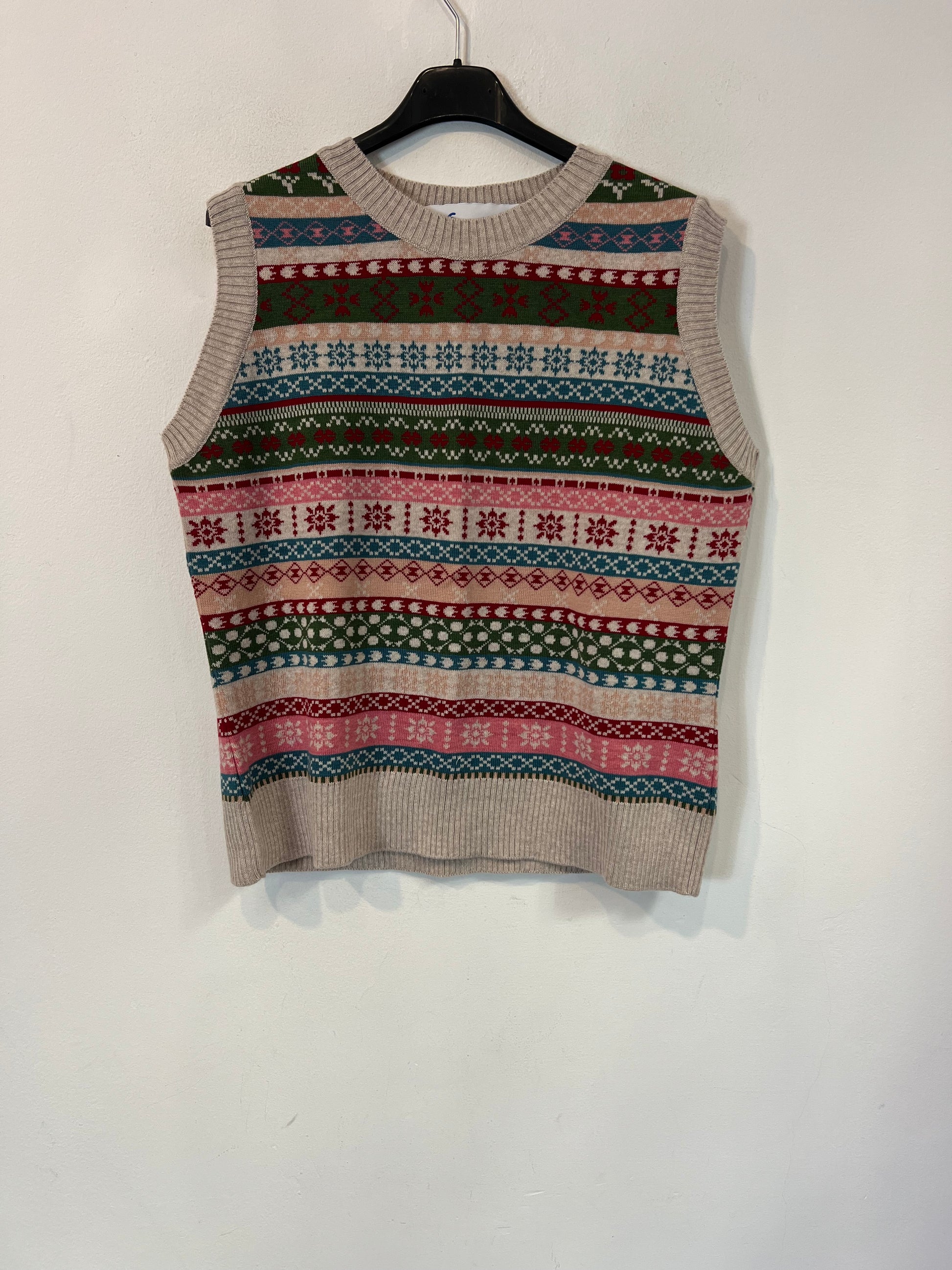 100% lana merino/ Espalda 56 cm, largo 59 cm/ en etiqueta talla 42/ talla como una M/L