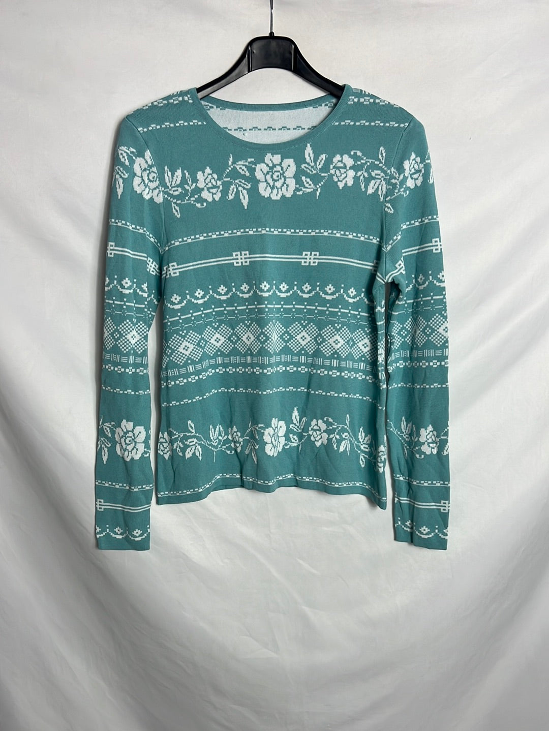 LA CASITA DE WENDY. Jersey fino azul claro estampado. T 38