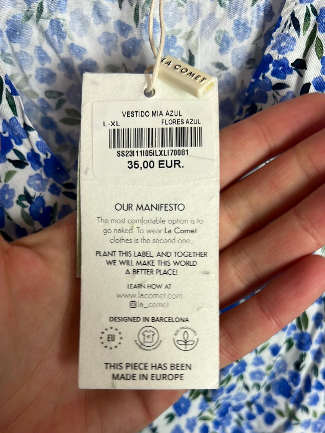NUEVO CON ETIQUETA. Vestido corto flores azules cruzado. De sisa a sisa 47cm, largo 85cm