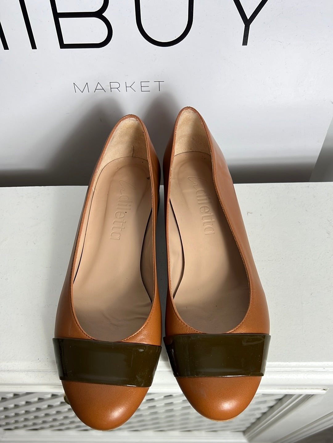 LA DILETTA. Bailarinas piel tacòn bajo. T 37