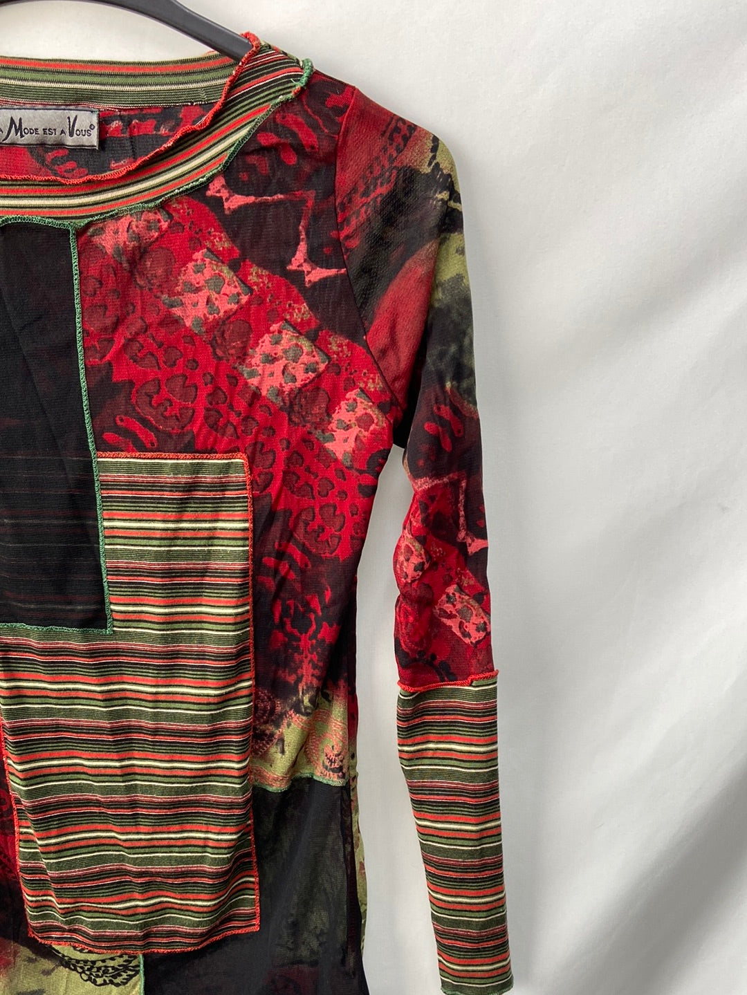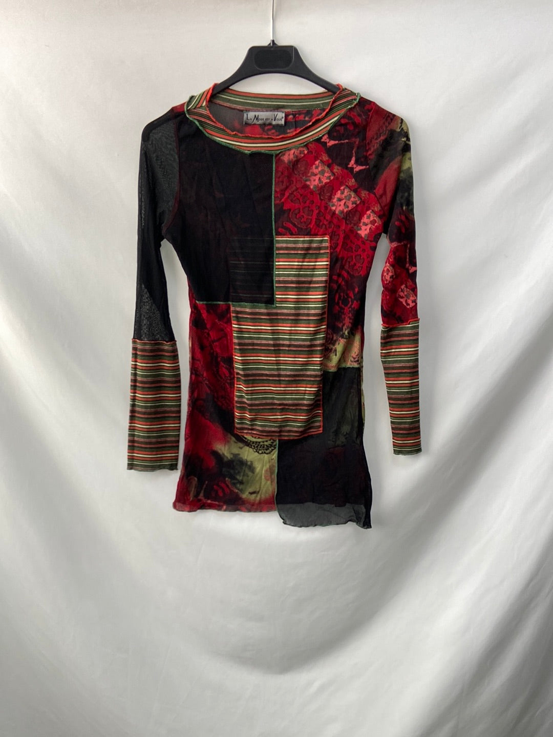 Top ajustado con varios estampado. Es muy elástica y semitransparente. Largo 70 cm.