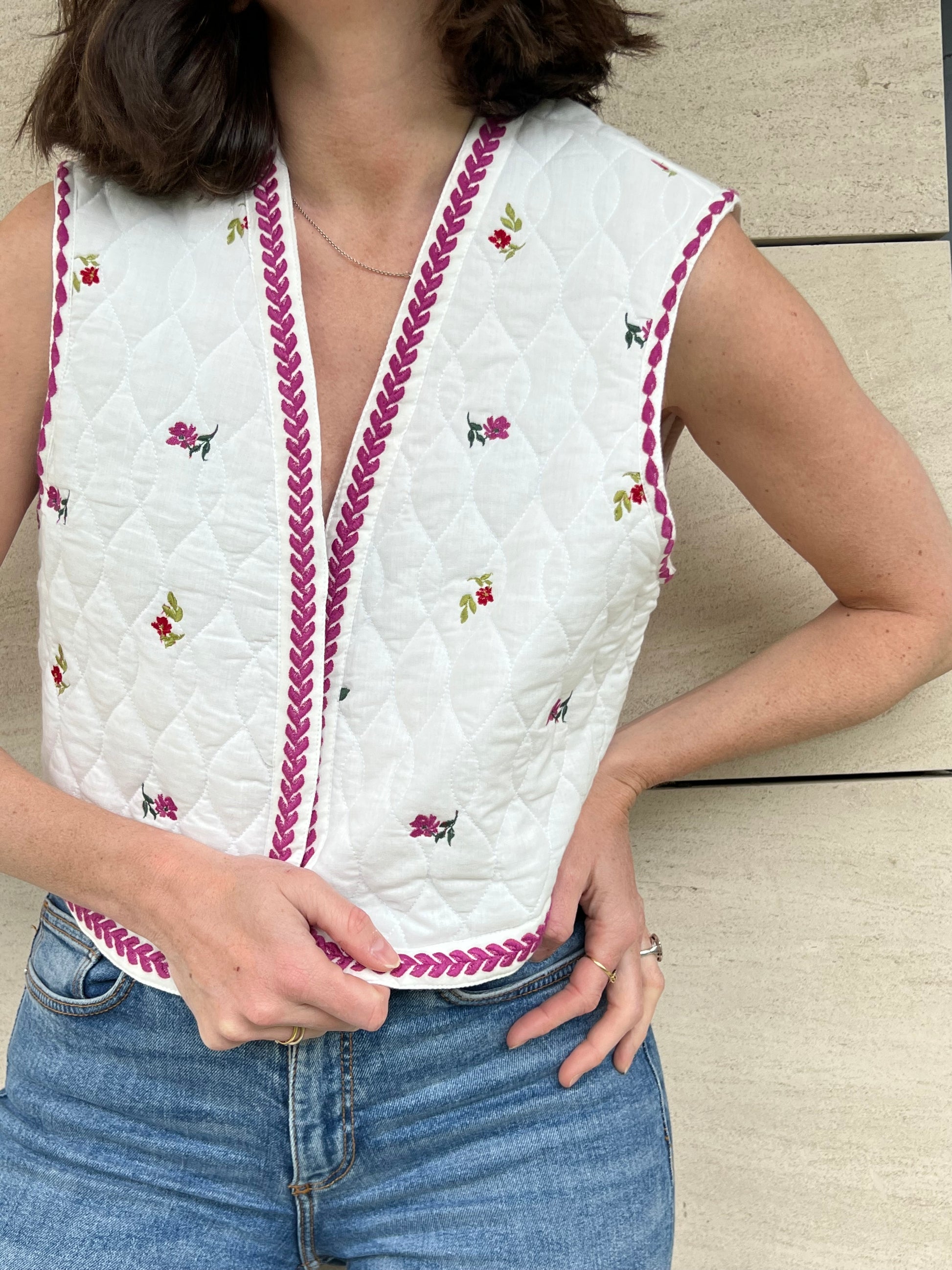 LA PETITE ÉTOILE. Chaleco blanco bordado T.1(s)
