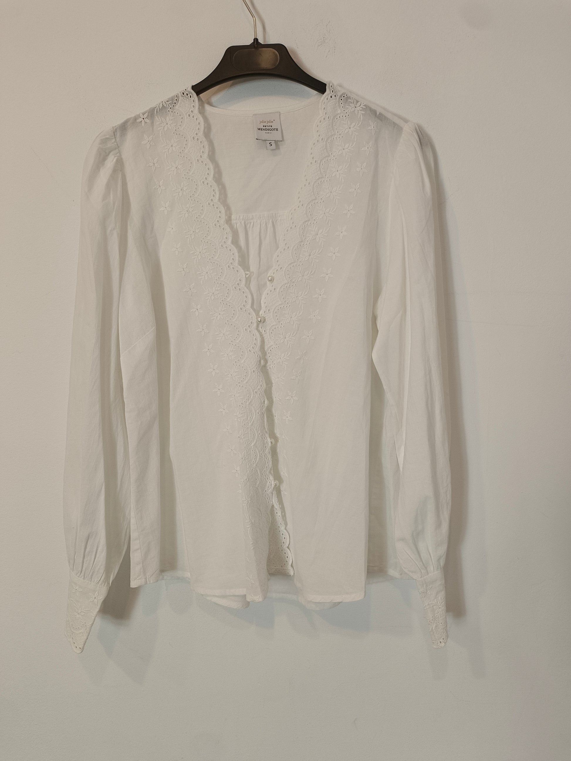 LA PETITE MENDIGOTE. Blusa blanca troquelada T.s