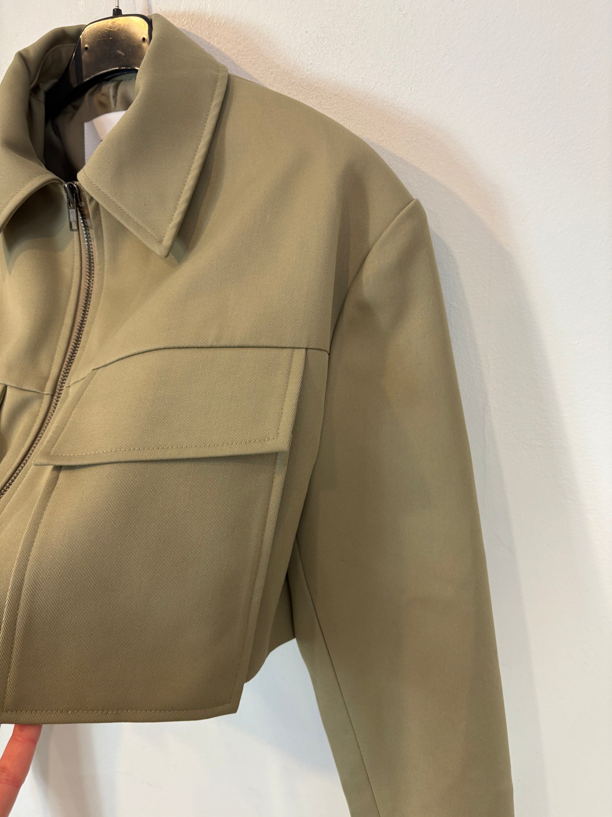 LA VIE. Chaqueta verde cropped bolsillos