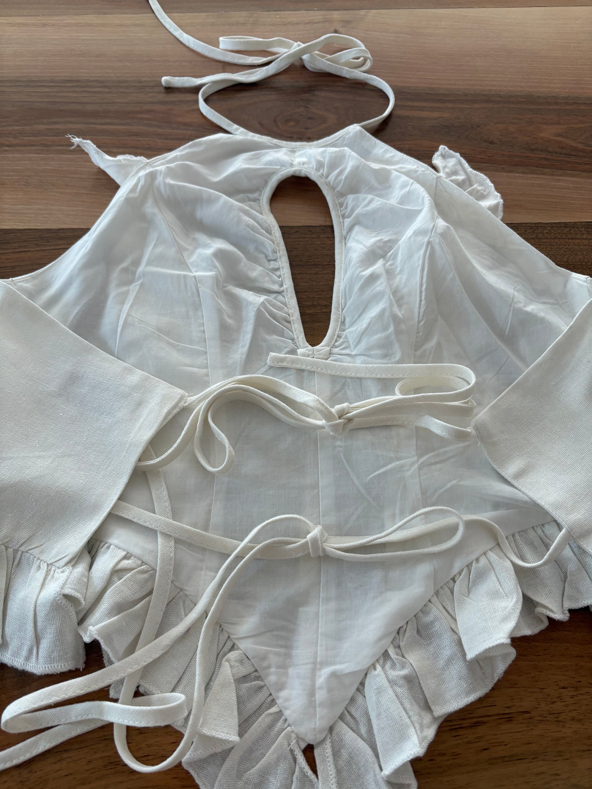 LAAGAM. Top blanco volantes con lino. T S