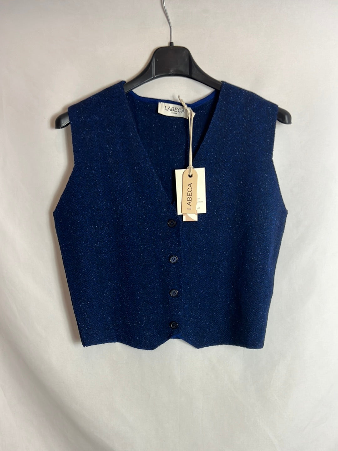 LABECA LONDON. Chaleco azul jaspeado lana. T S