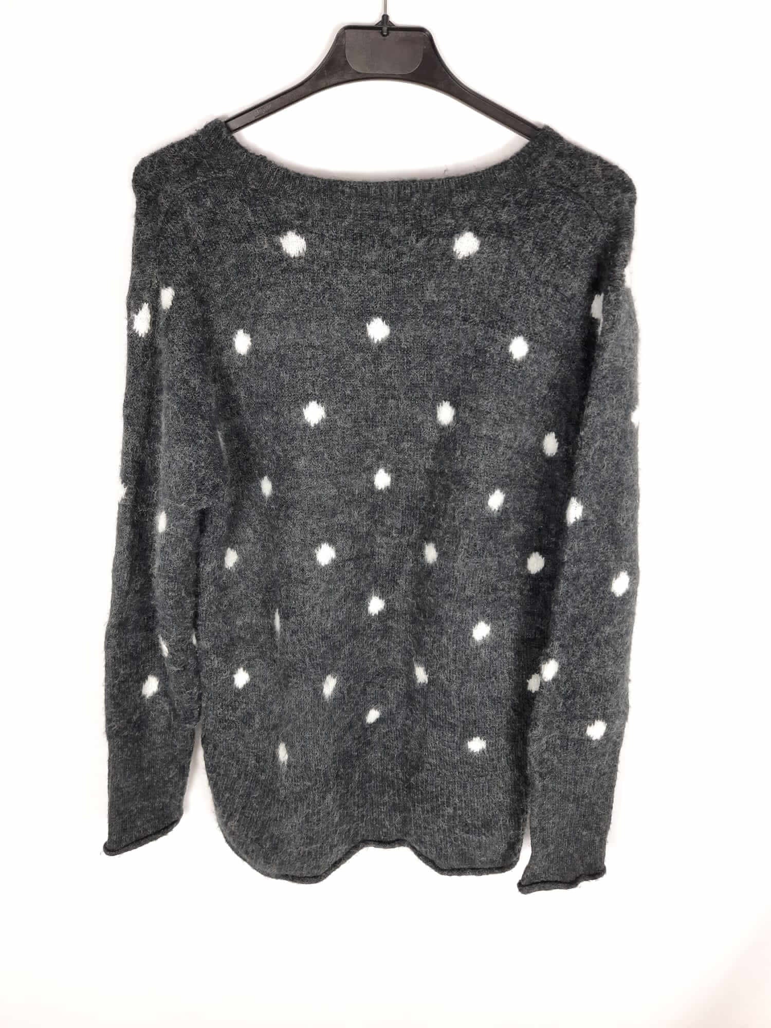 Hym. Jersey gris con lunares y pelito blancos. Escote oversized. Largo 70 cm