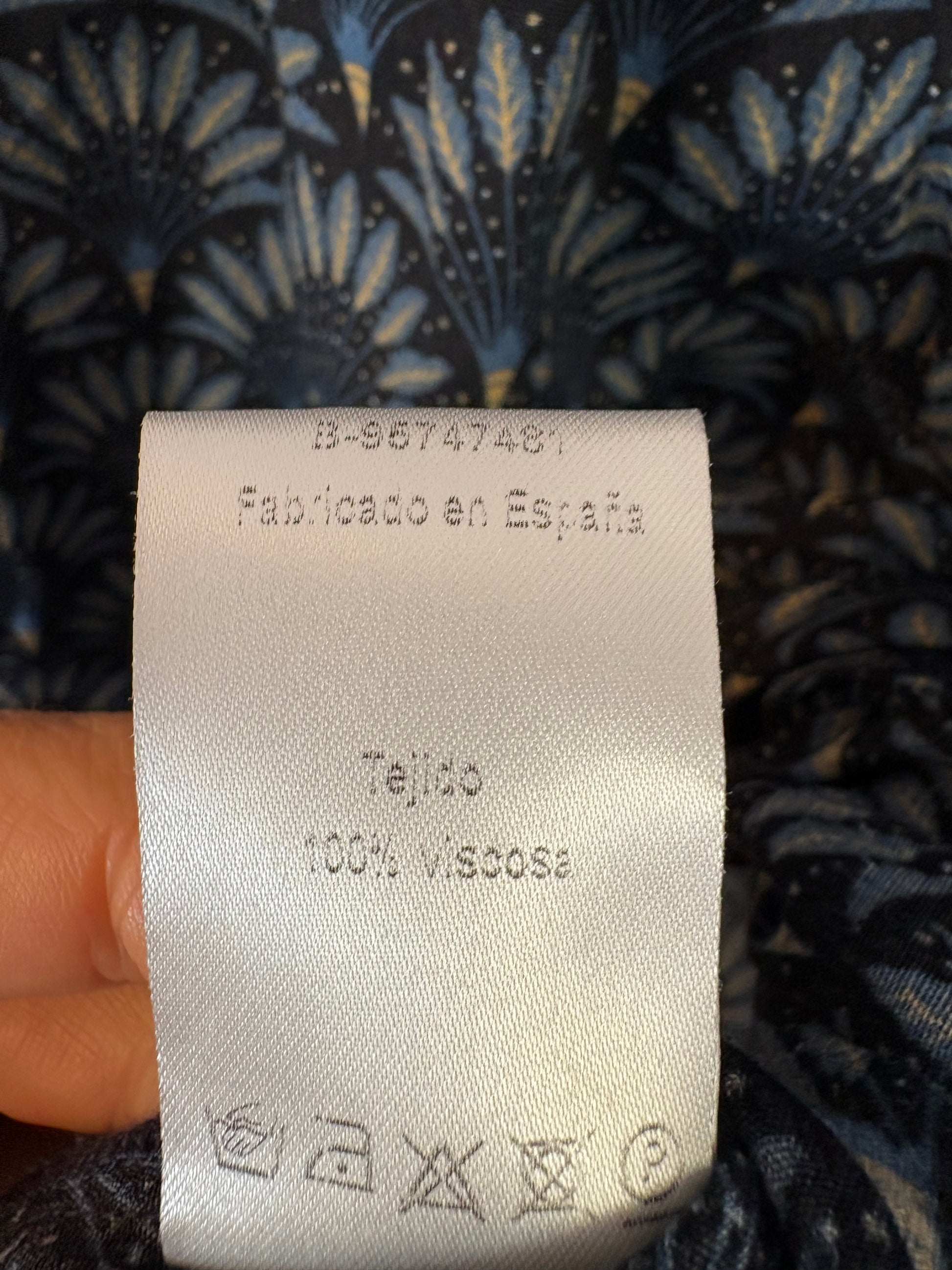 Pantalón: cintura 33 semi elástica, largo 122 cm