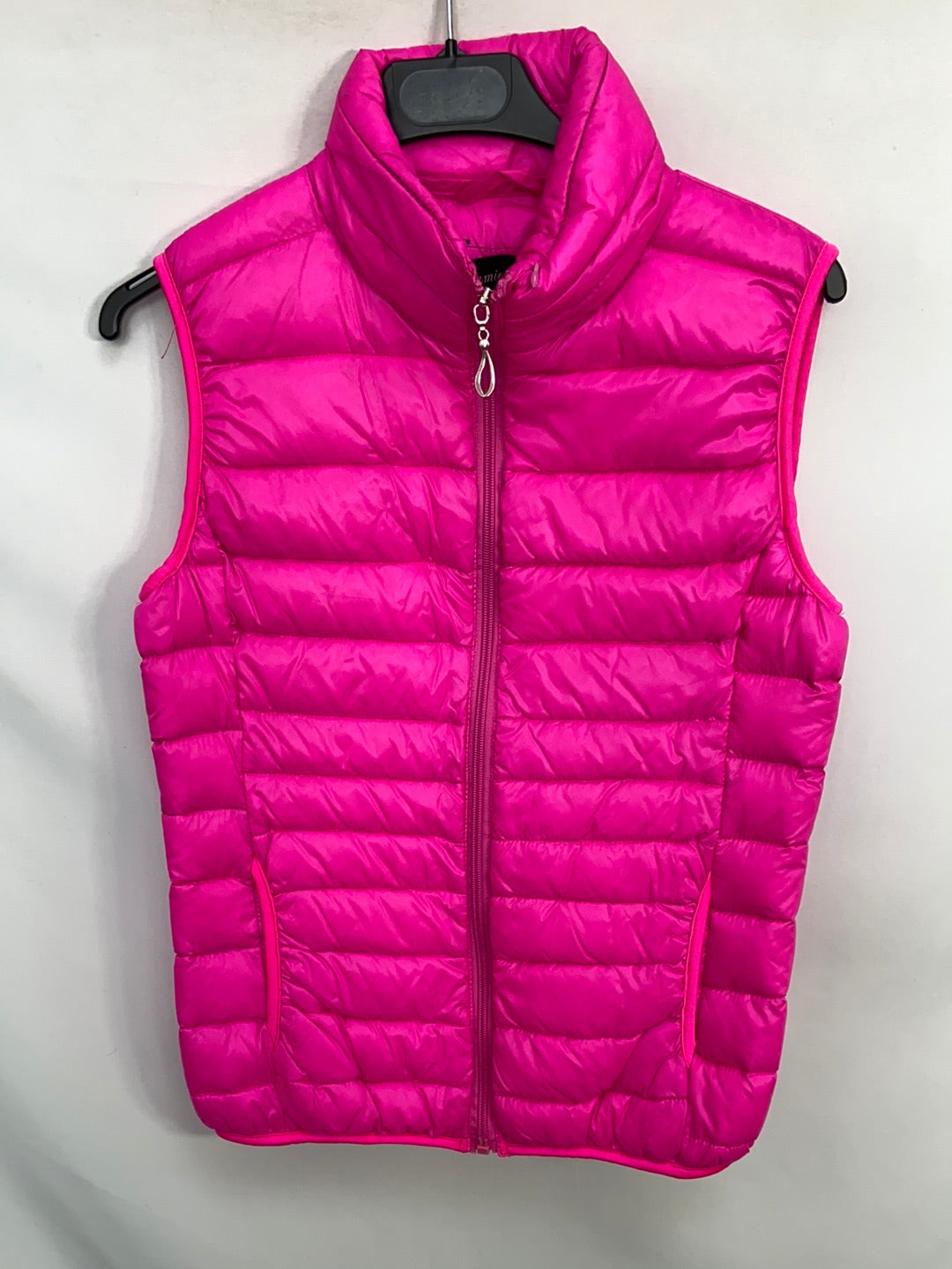 plumas ligero chaleco rosa fosforito. De sisa a sisa 43 cm largo 58 cm