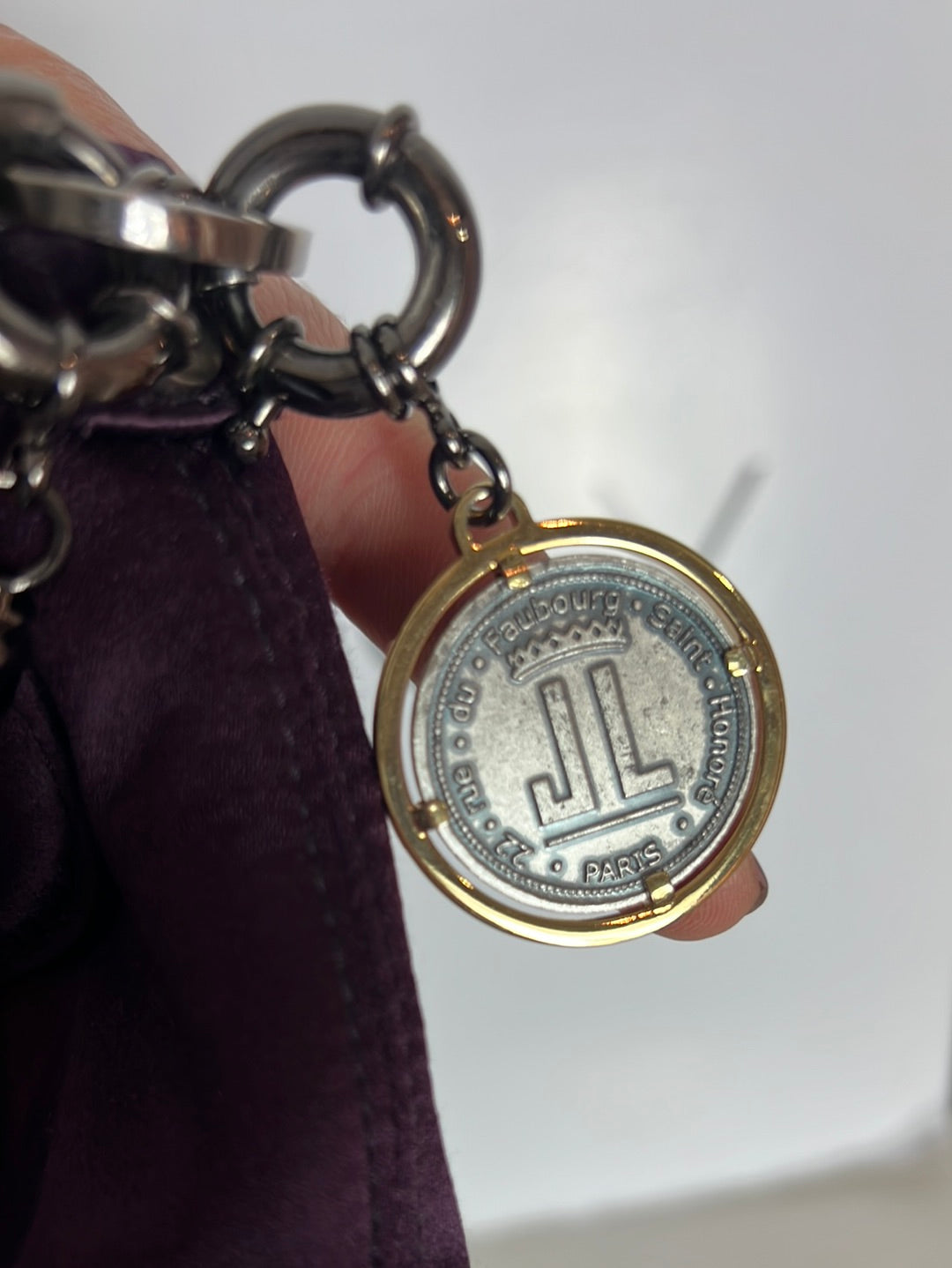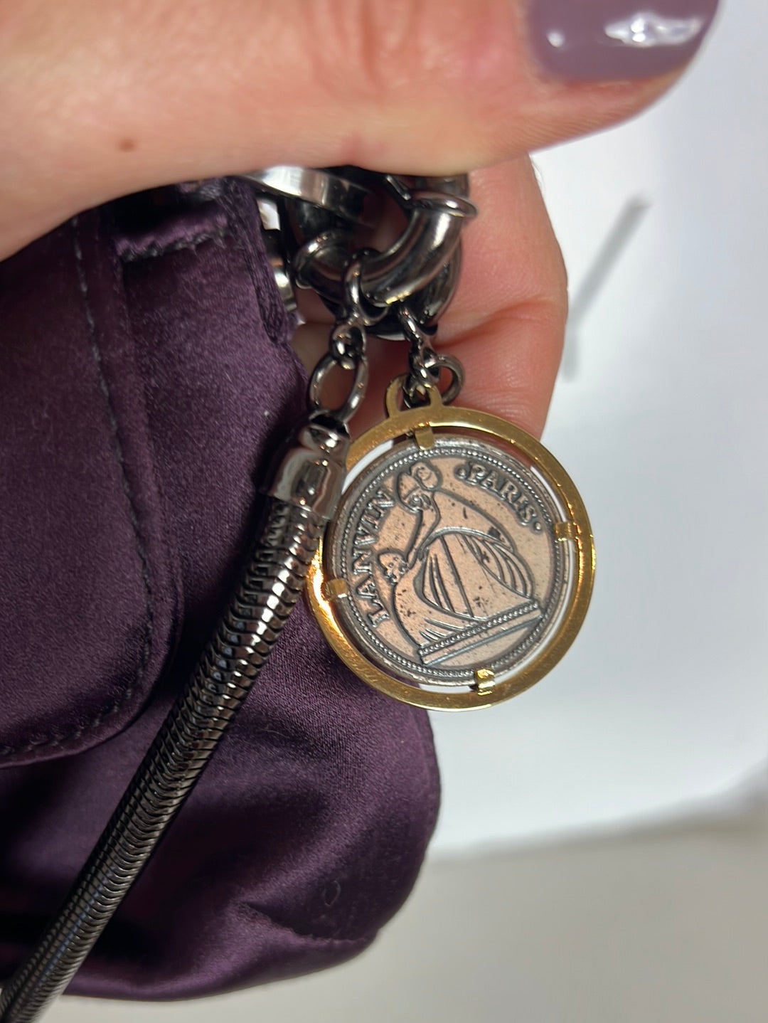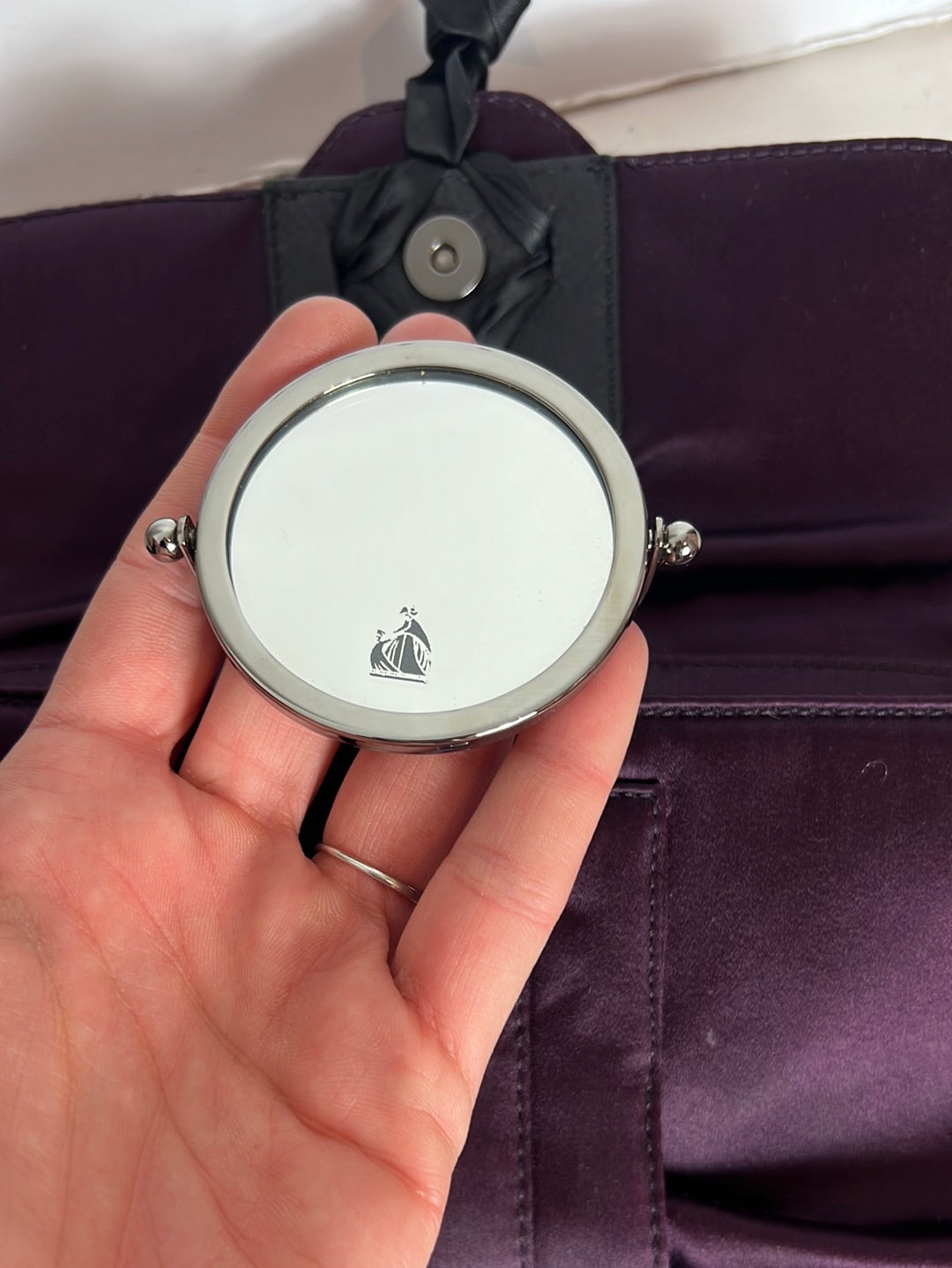 Bolso mini color berenjena con espejo interior. Tara: tiene un roce en el broche (foto). Ancho 26cm, alto 13cm