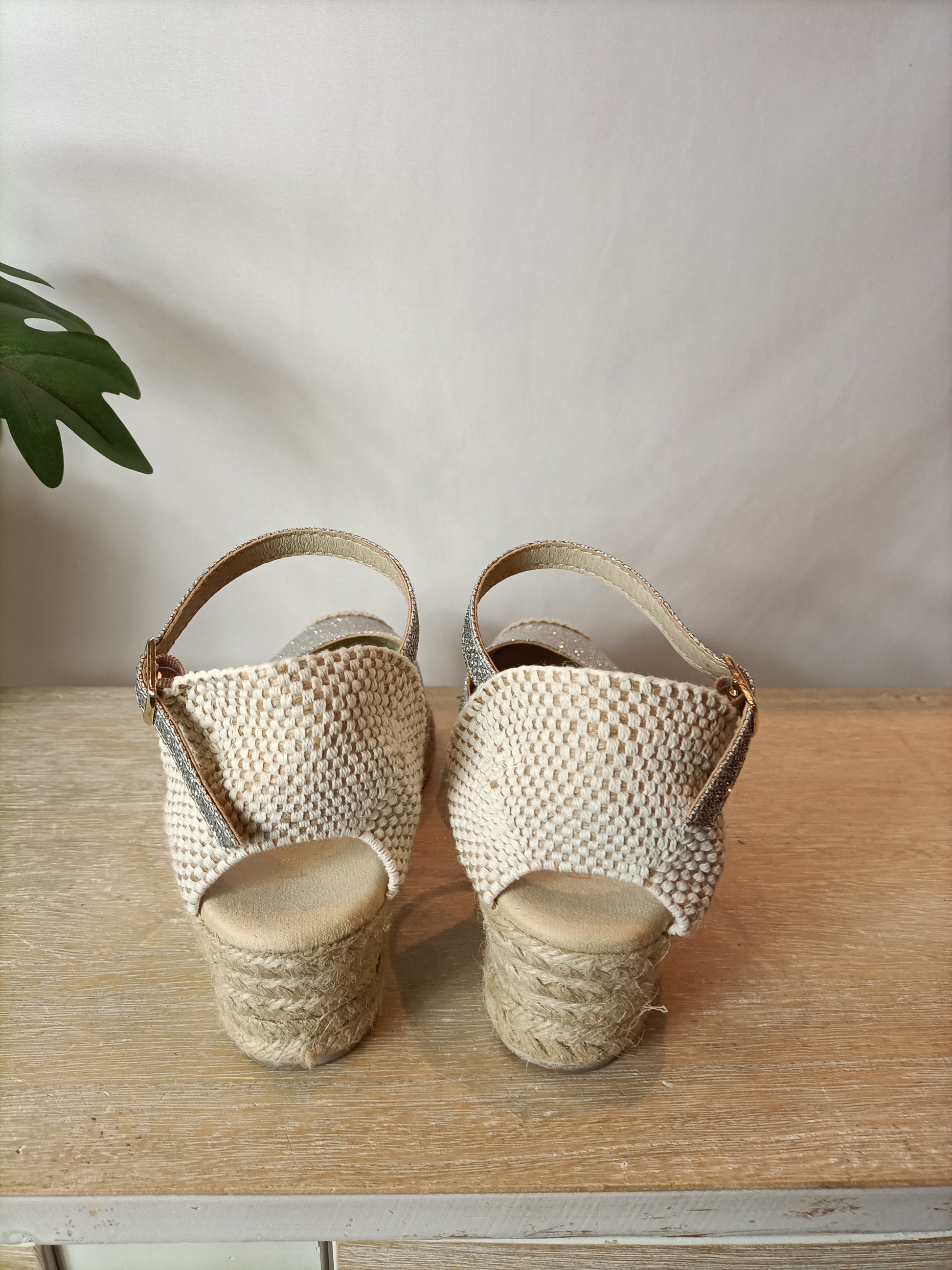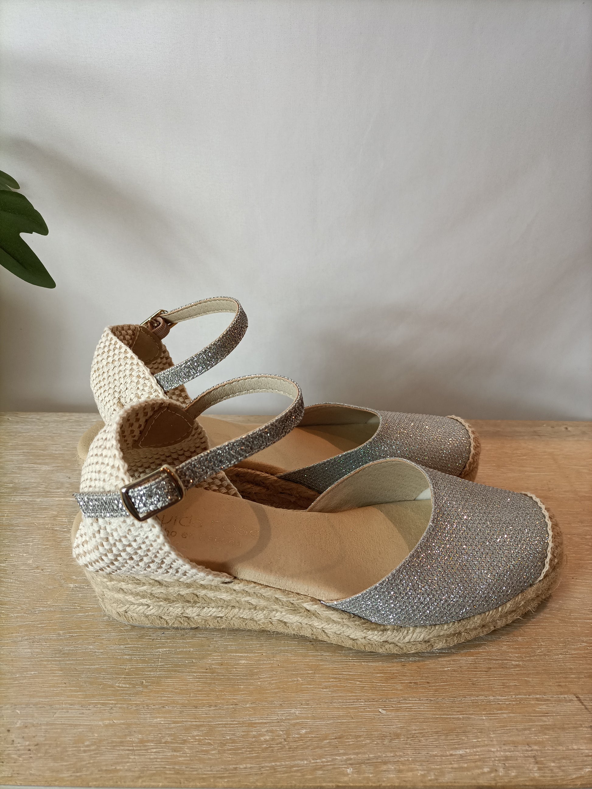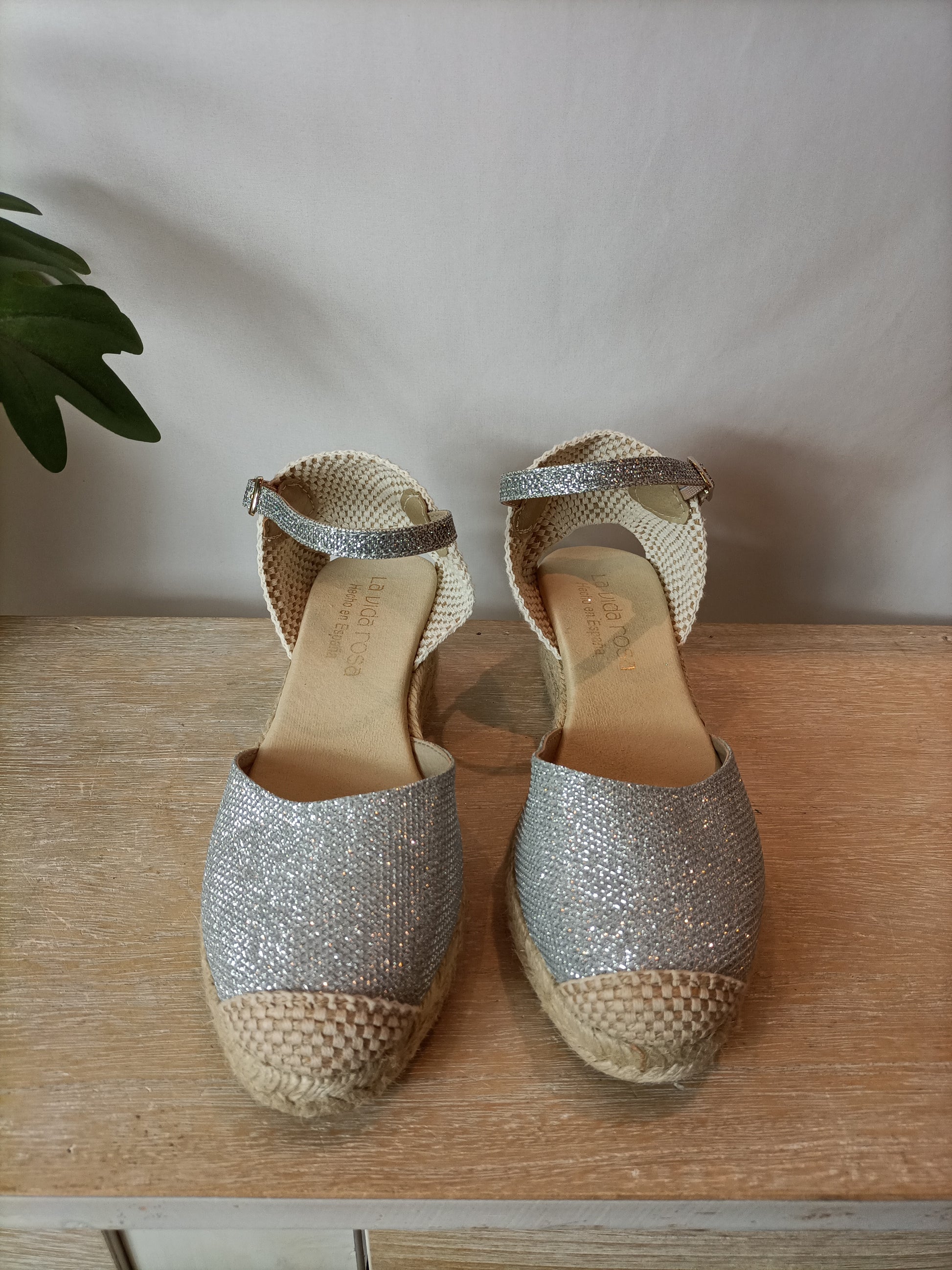 LA VIDA ROSA. Cuñas esparto plateadas T.38