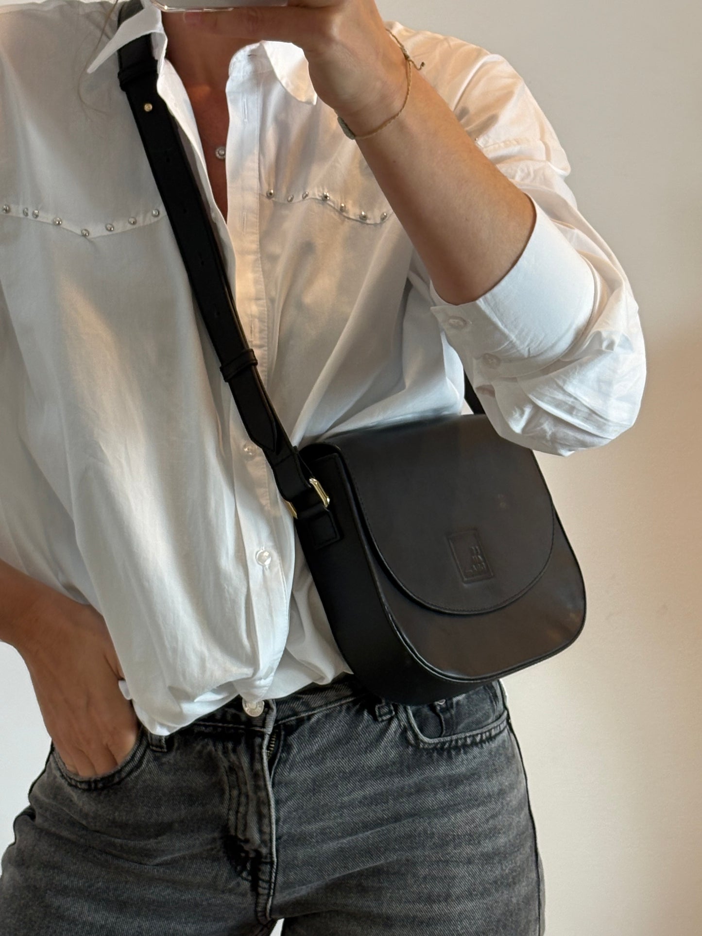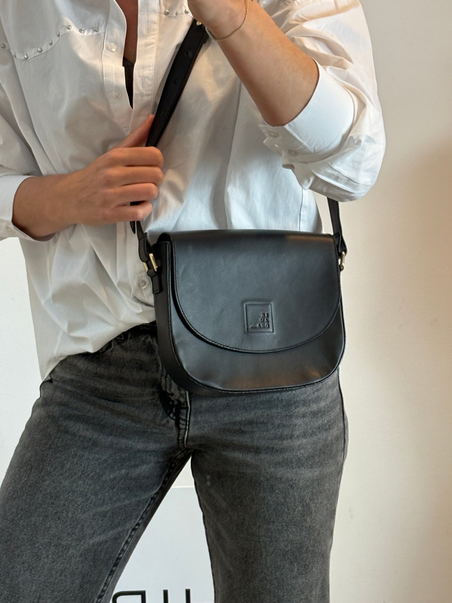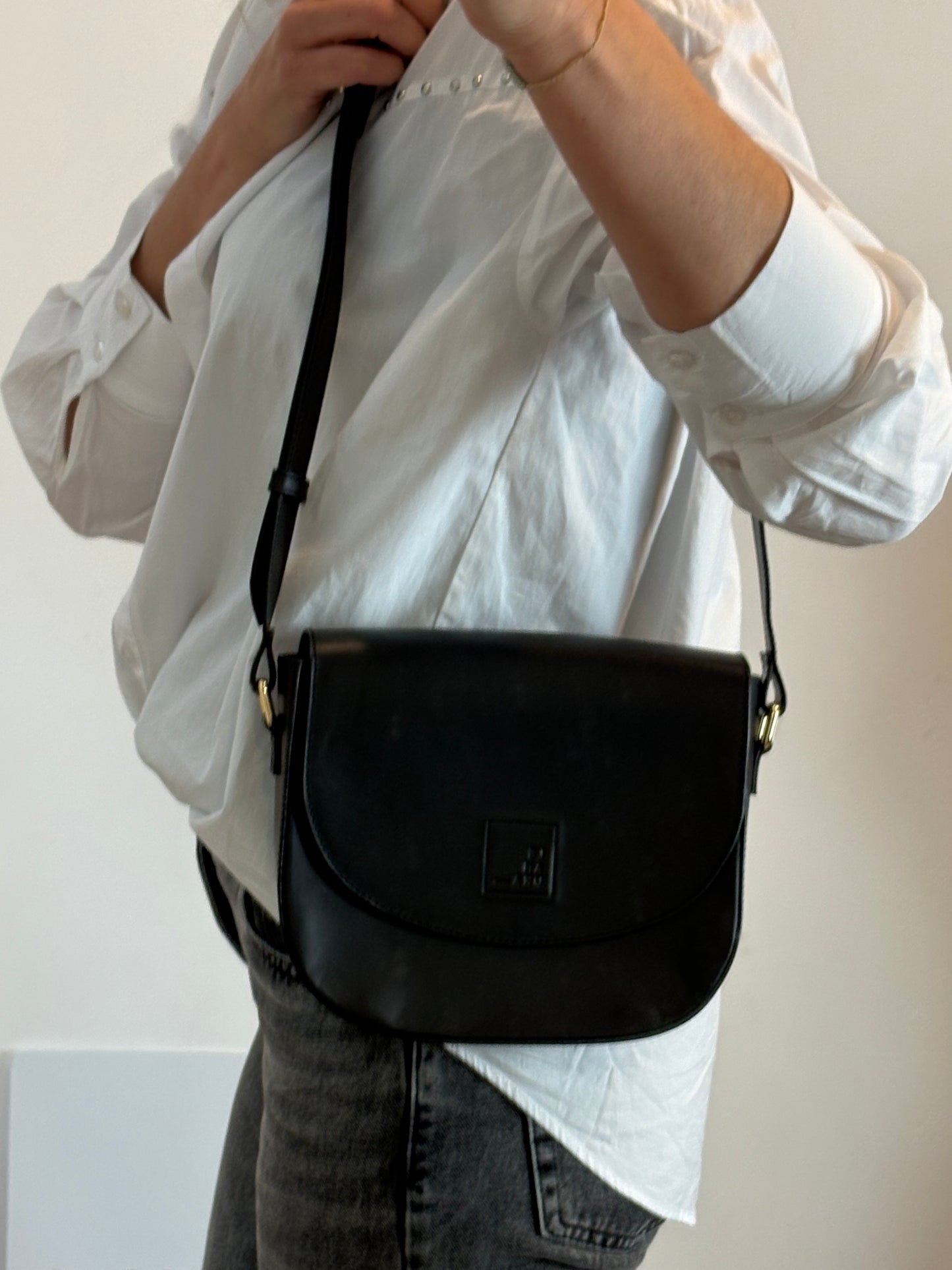 LEANDRA. Bolso bandolera solapa negro