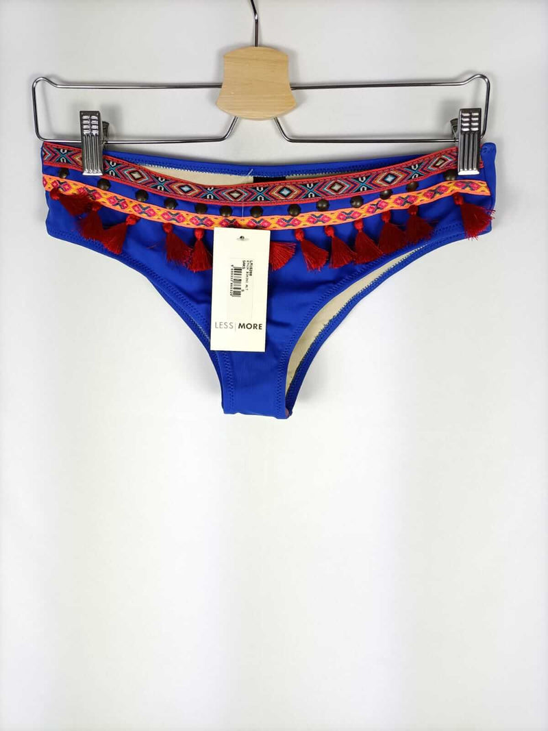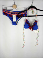 Less more. Bikini azul con flecos estilo hippies.