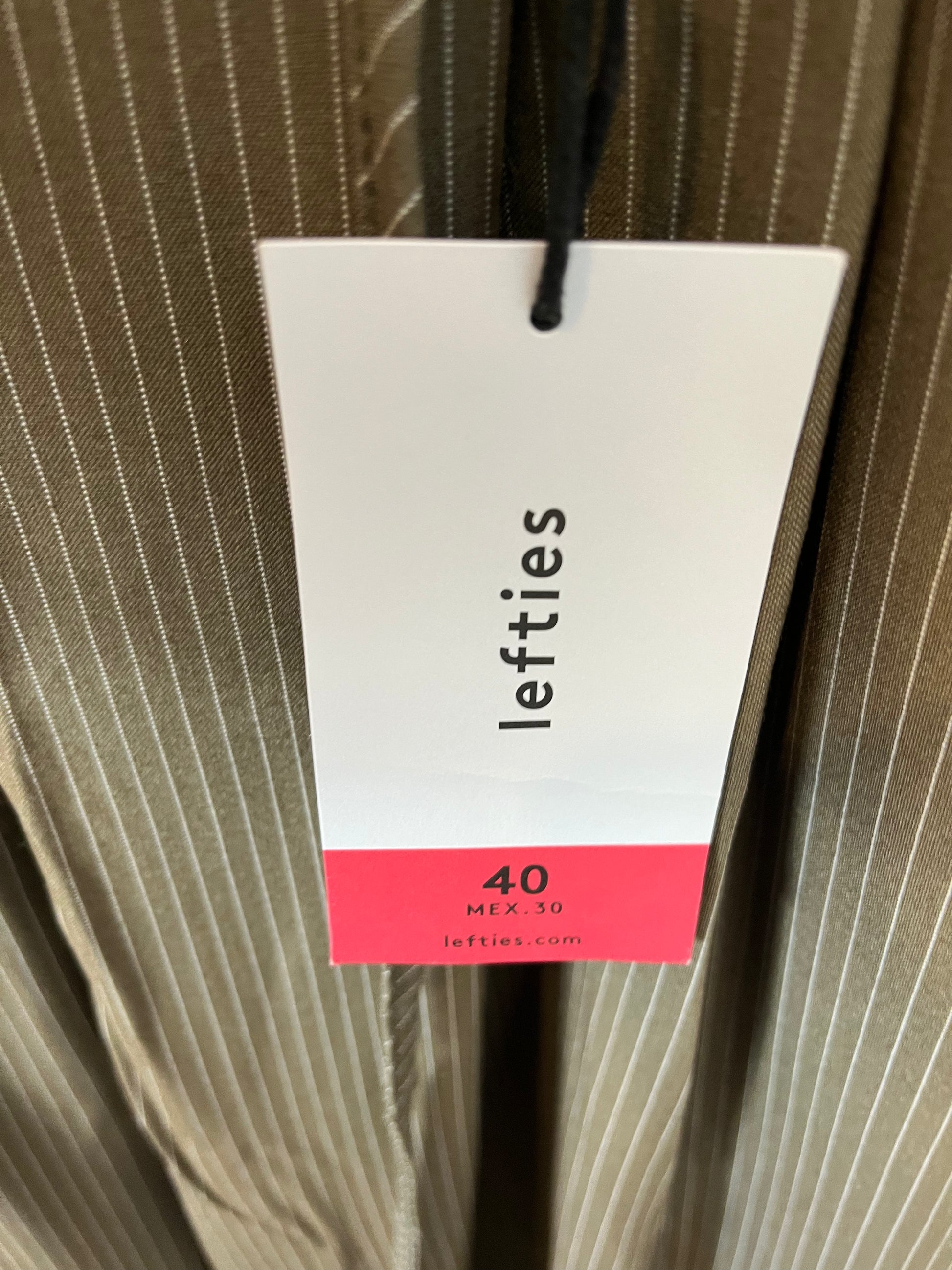 LEFTIES. Pantalón pinzas verde caqui raya diplomática. T 40
