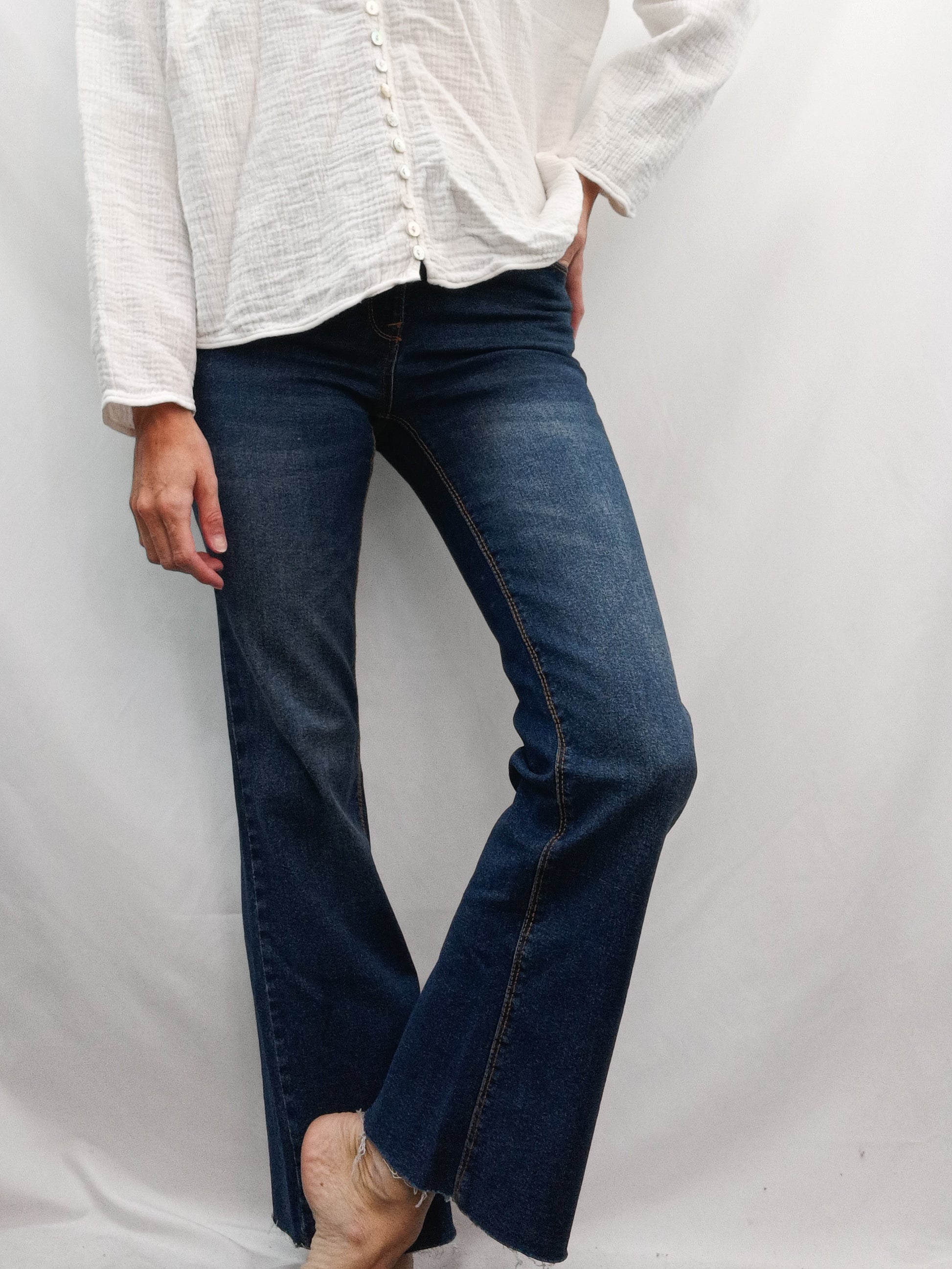 Pantalones vaqueros elásticos acampanados. Cintura 34 cm largo 97 cm