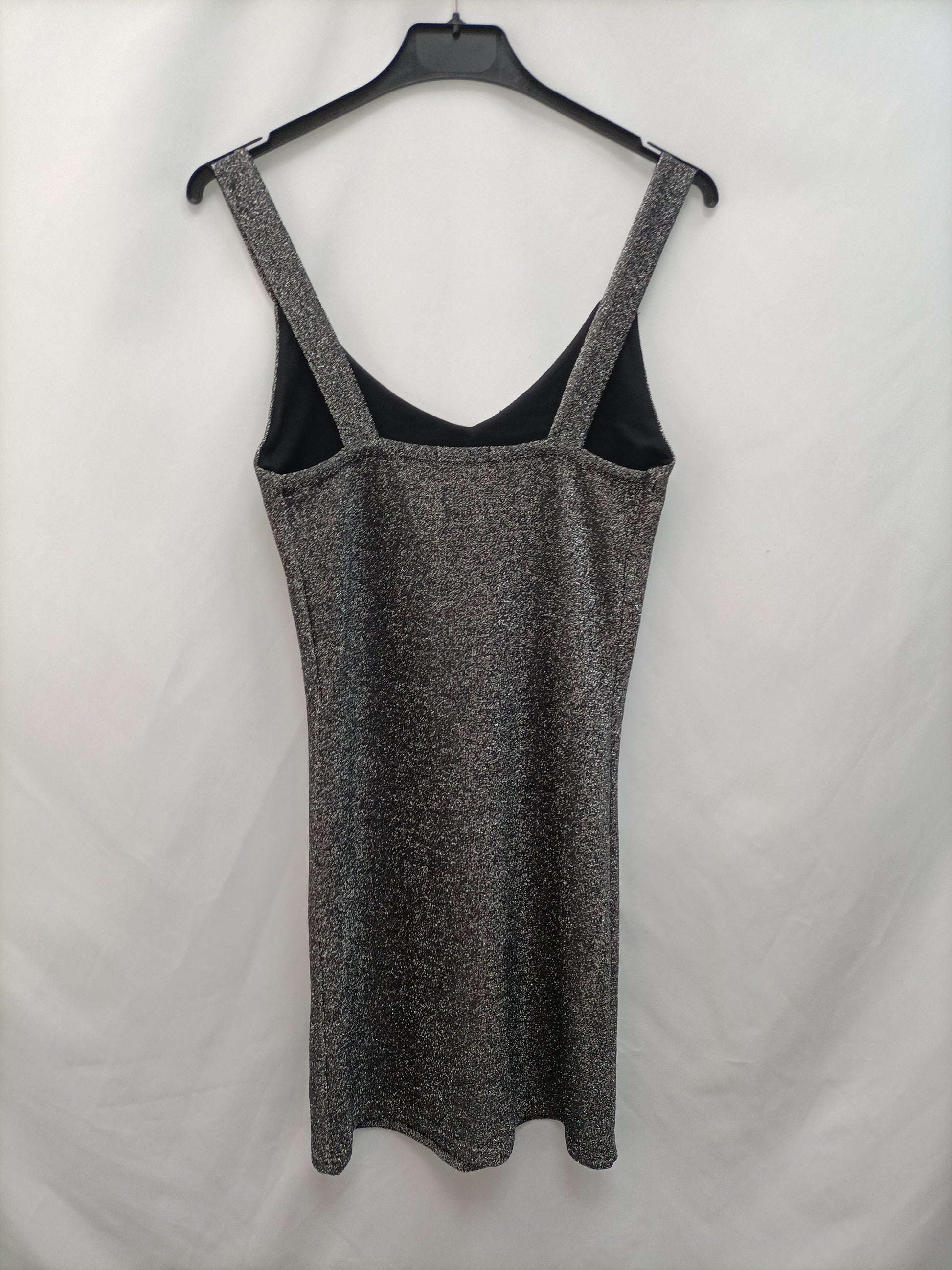 Lefties. Vestido ajustsdo de purpurina plateada. Es ajustado y elástico. Largo 86 cm