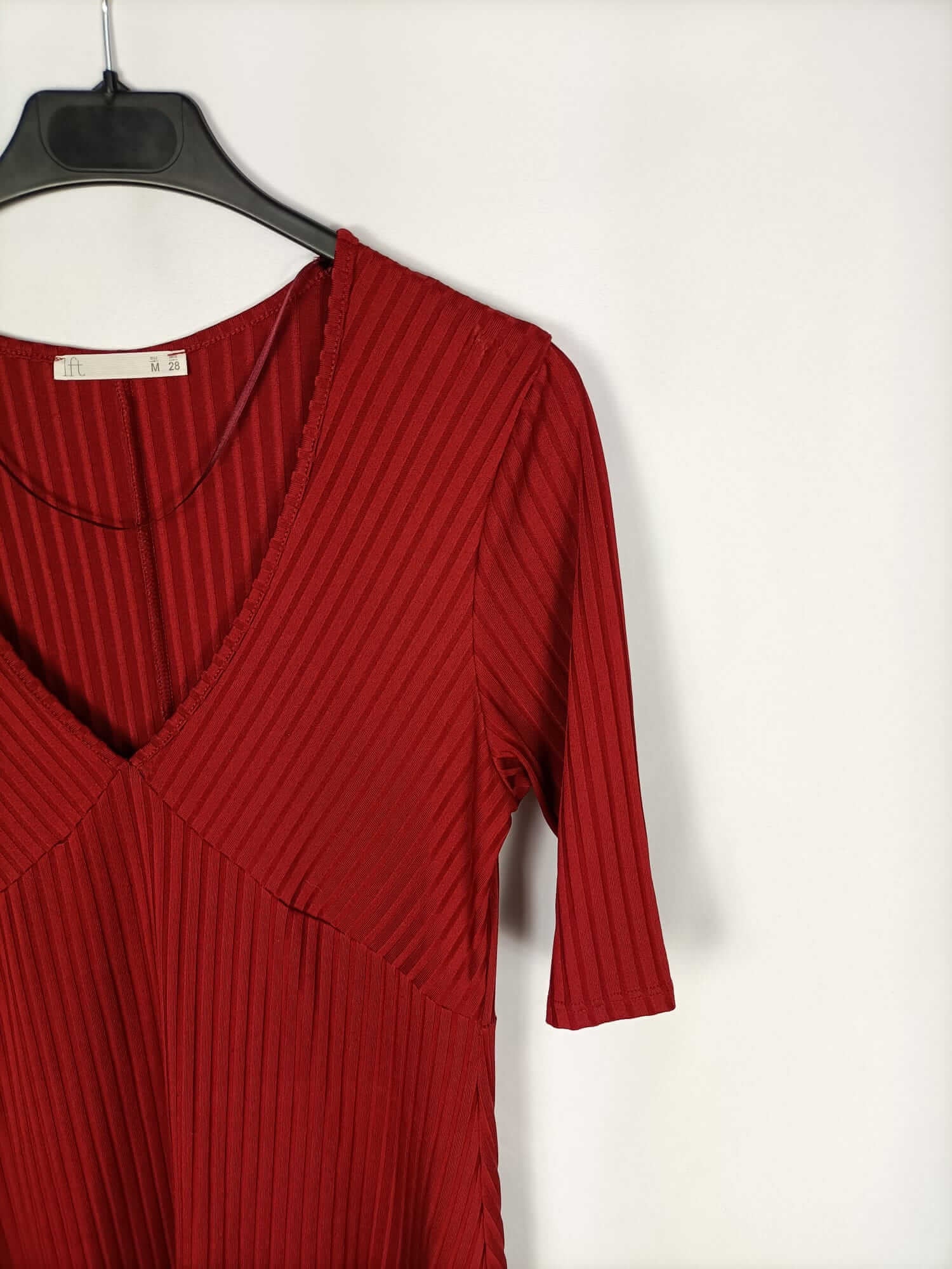 Lefties. Vestido corto color teja de canalé. Elastico y fluido. Escote pico. Largo 84 cm