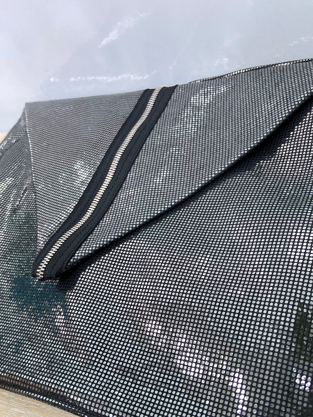 Cartera de mano brillante con detalle de cremallera. 35x29 cm
