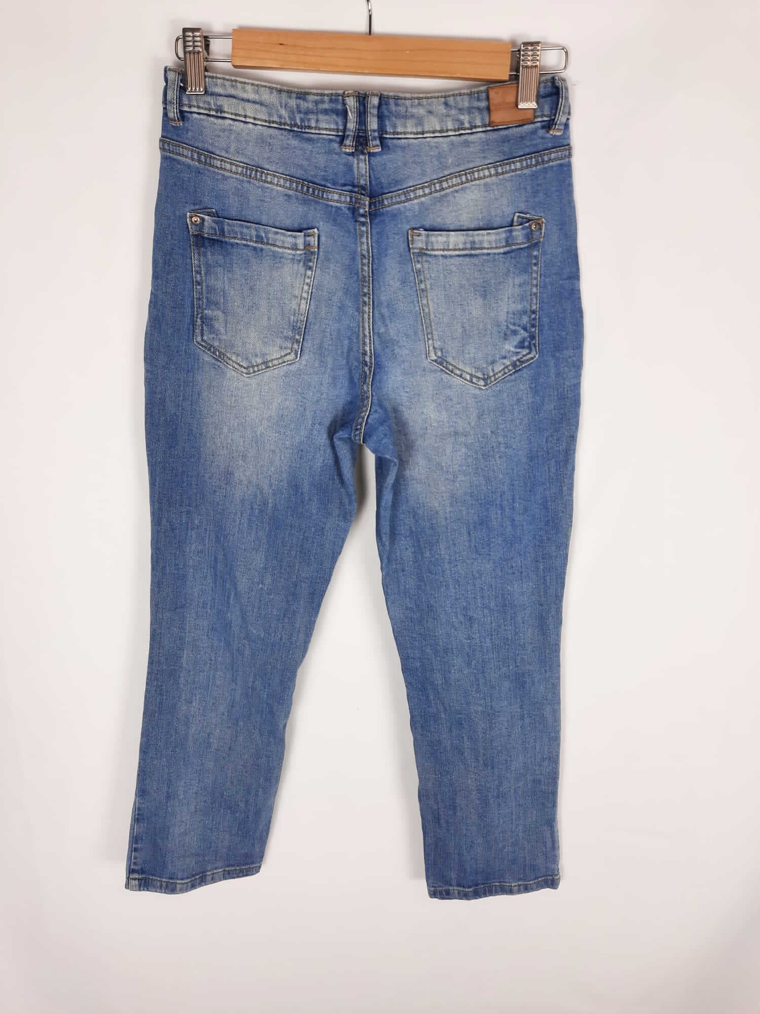Lefties. Pantalón vaqueros con parches bordados. Corte recto. Cintura 34 cm largo 87 cm